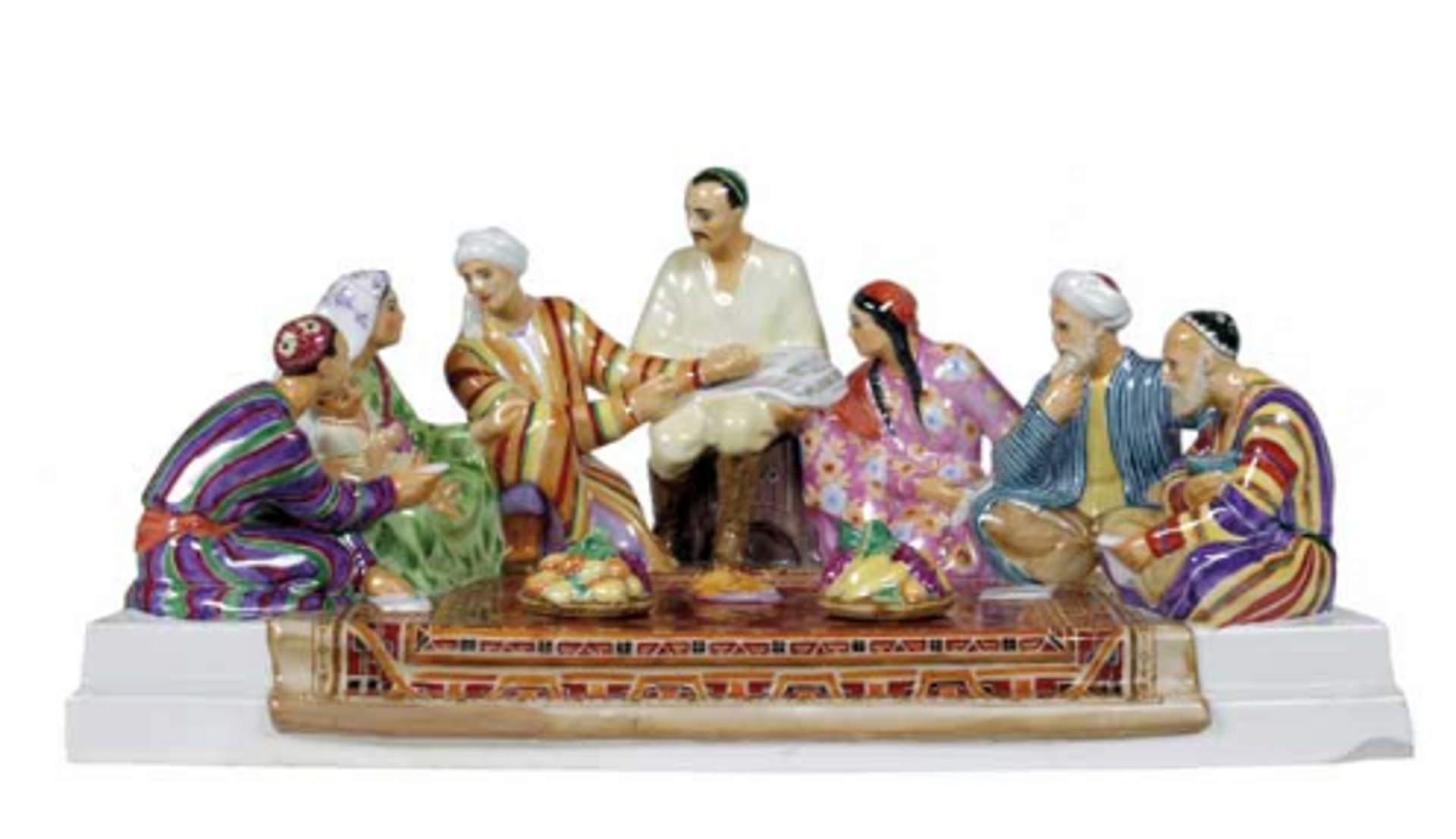 This porcelain inkpot of people drafting Stalin's constitution has a striking resemblance with today's current political situation in Russia Photo: Courtesy of Sovcom