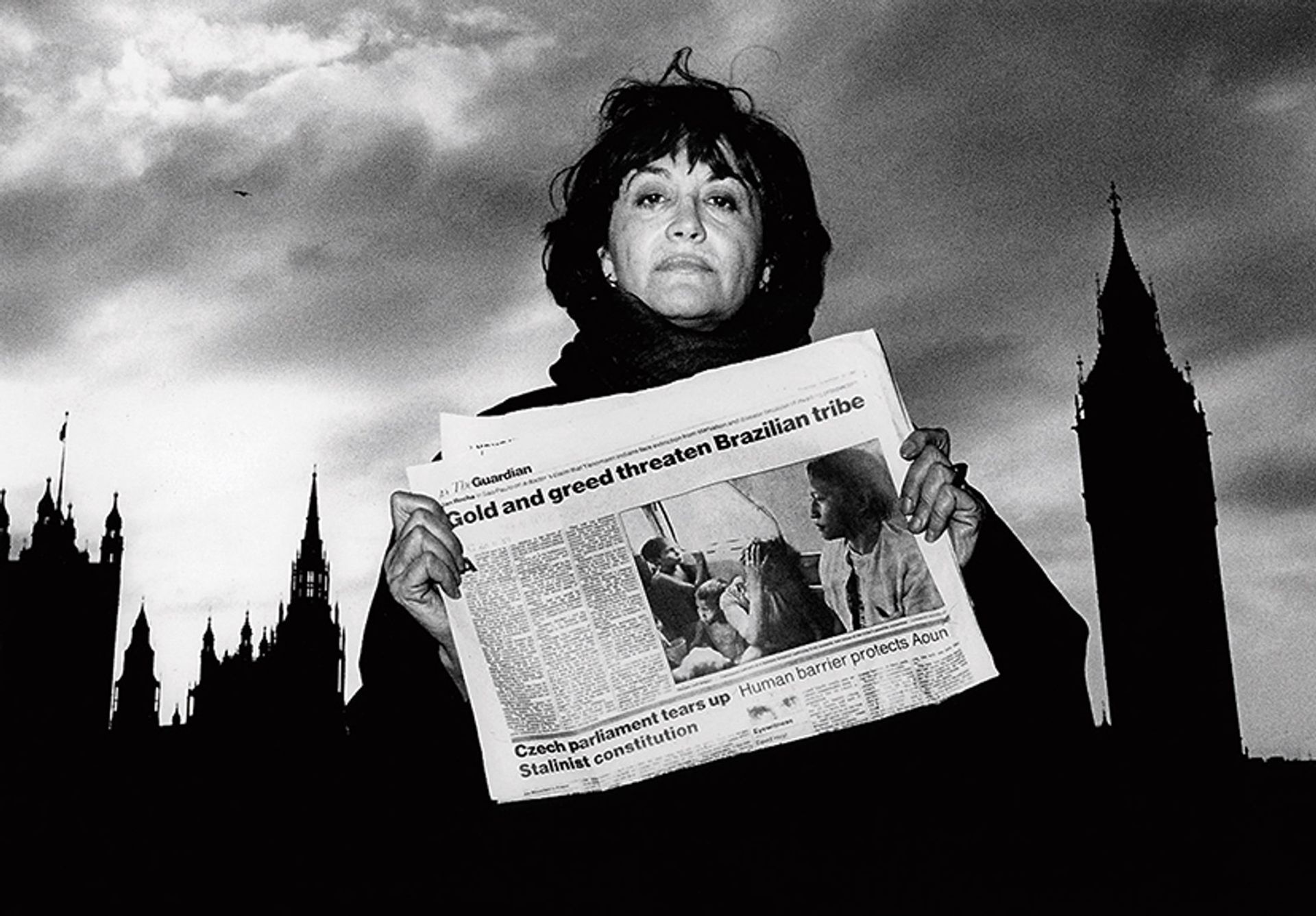 Claudia Andujar pictured holding the Guardian in 1989 © Robert M. Davis/Oxfam, Courtesy Instituto Moreira Salles