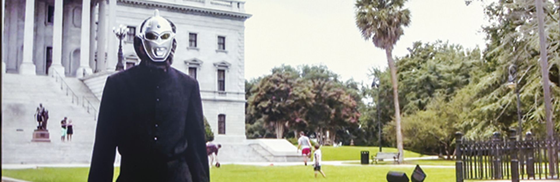 The characters in McMillian’s films wear armour-like costumes that serve as protection Photo: Zak Kelley; Courtesy of The Underground Museum