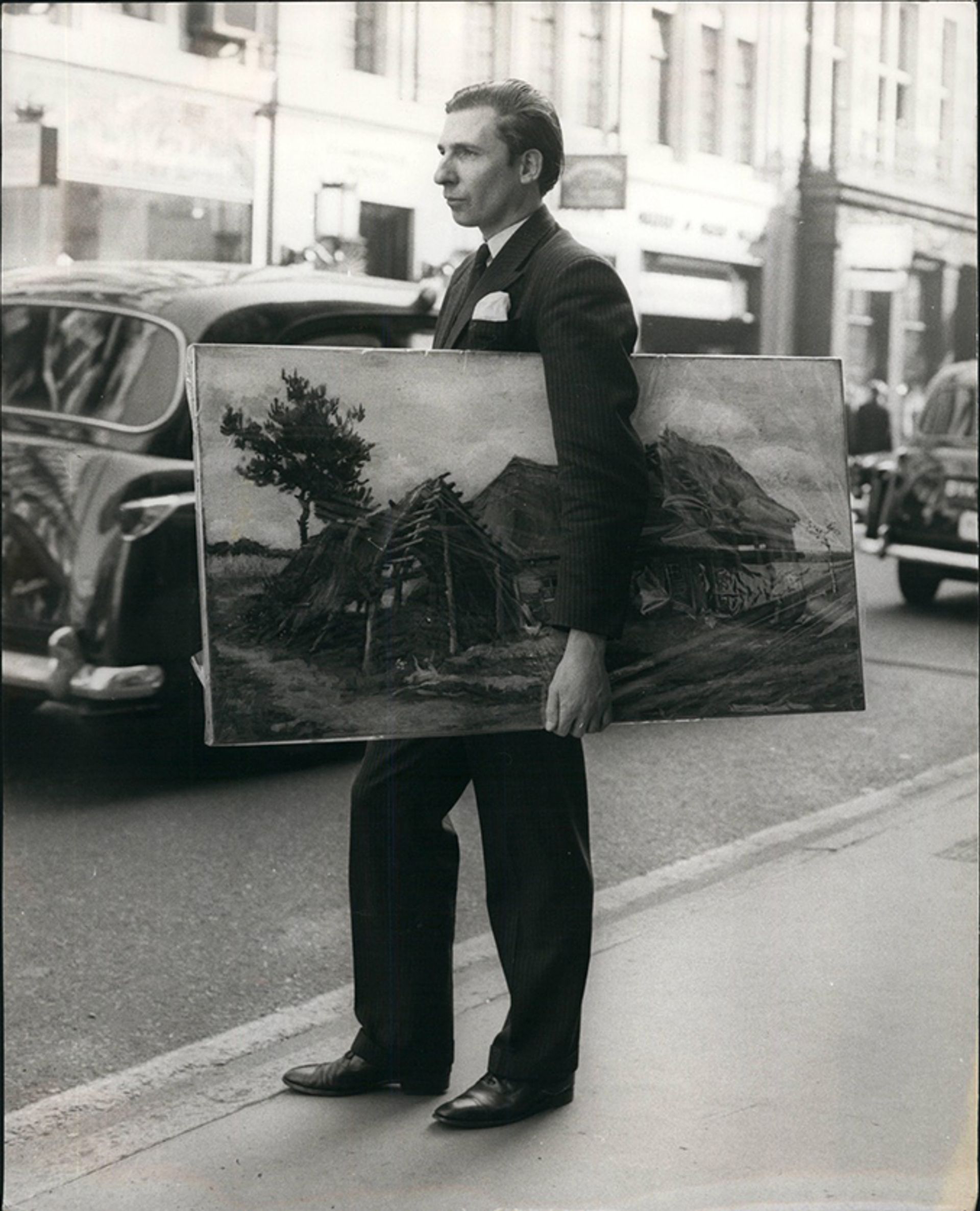 David Norsworthy, general manager of The Burlington Magazine, taking the newly authenticated Van Gogh to Agnew’s, Bond St, London, March 1969 © Keystone Pictures USA, courtesy of Simon Dickinson, London