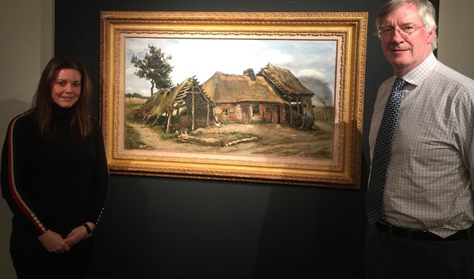 James Roundell (Dickinson’s specialist) and Emma Ward (Dickinson’s managing director) with Van Gogh’s Peasant Woman in front of a Farmhouse © Martin Bailey