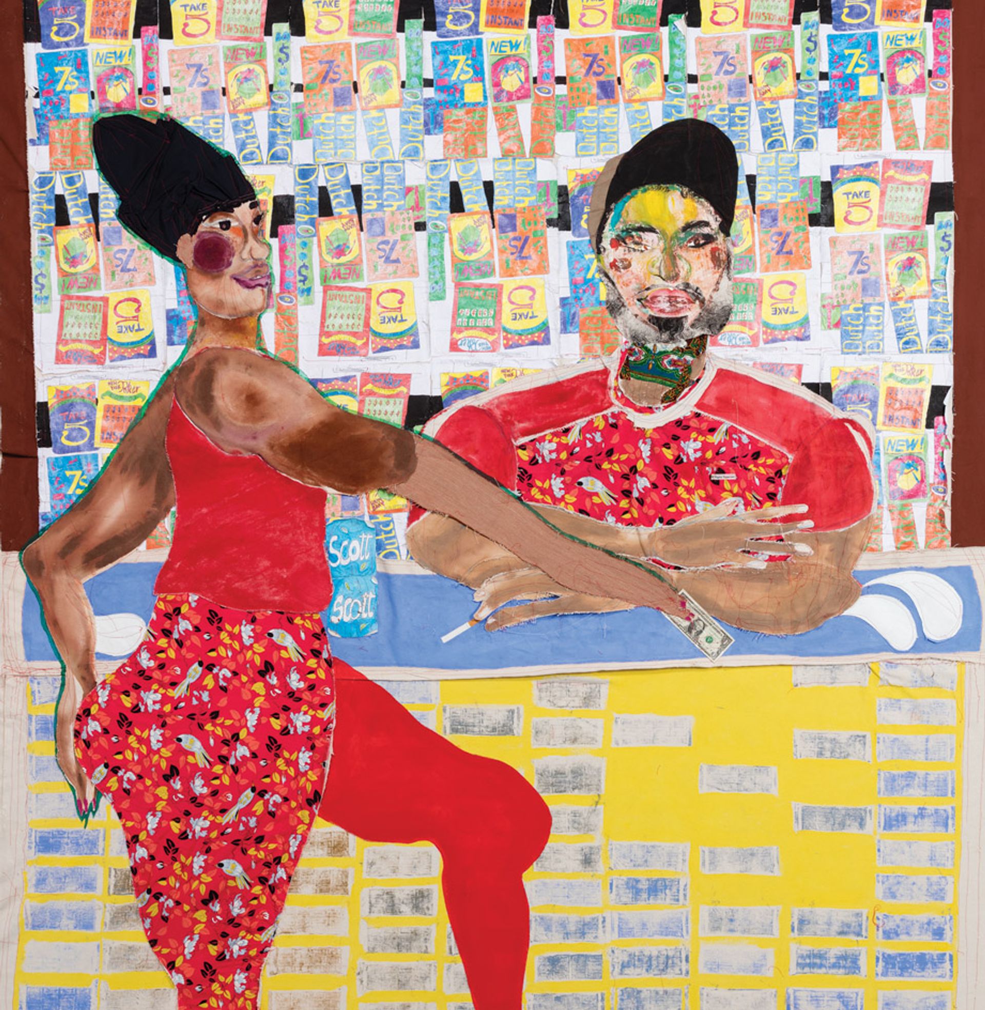 Koco at the Bodega (2017), left, is from Self’s Bodega Run series. © Tschabalala Self; courtesy of Pilar Corrias Gallery