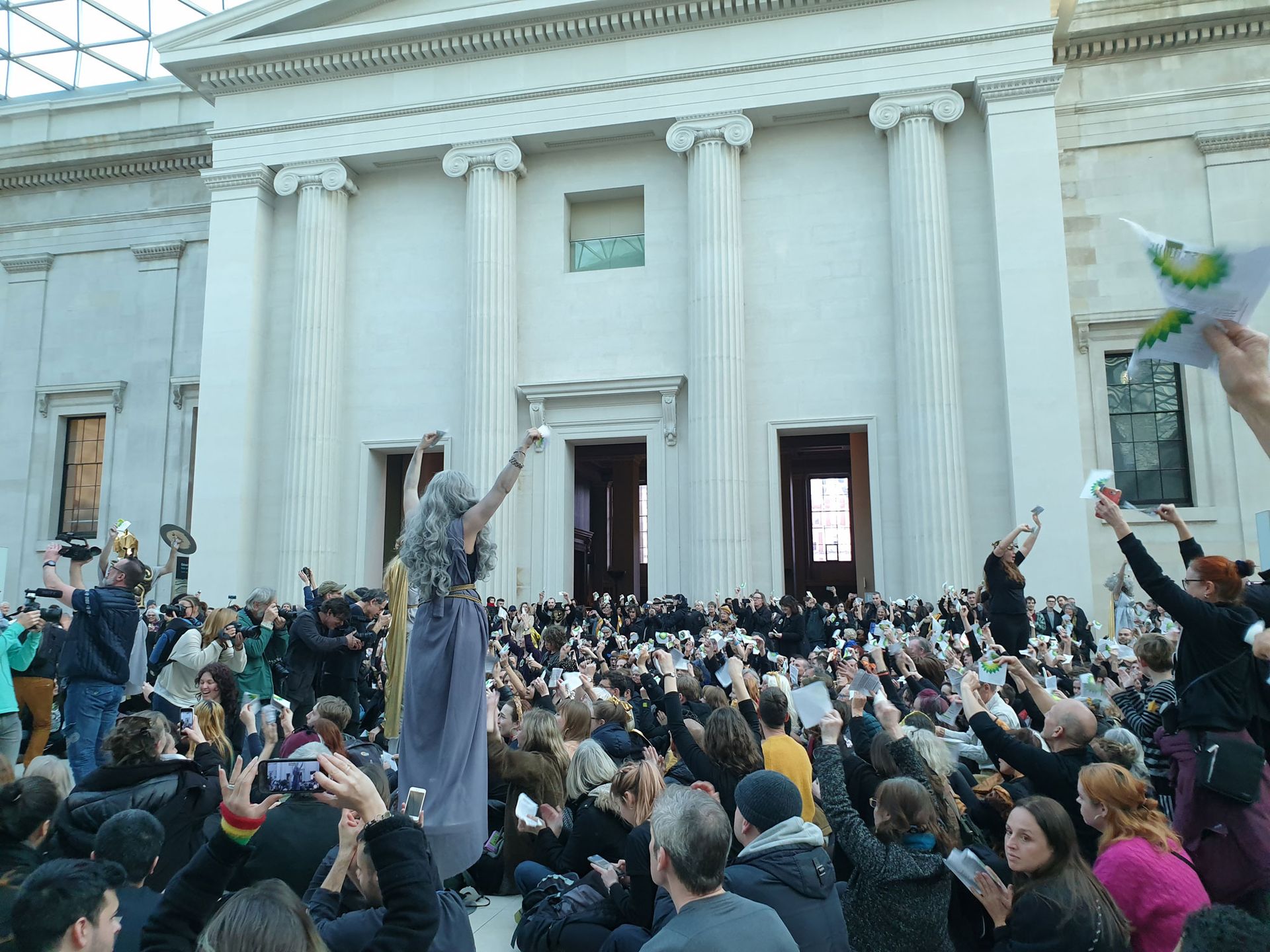 Whatever the exact numbers, the protest amounted to an unprecedented takeover of a UK national museum, with several galleries occupied by campaigners for speeches, singing and processions. The mood throughout was upbeat, almost celebratory, with spontaneous chants of “BP must fall” erupting throughout the occupied spaces and theatrical processions winding their way through the museum’s galleries and public spaces.