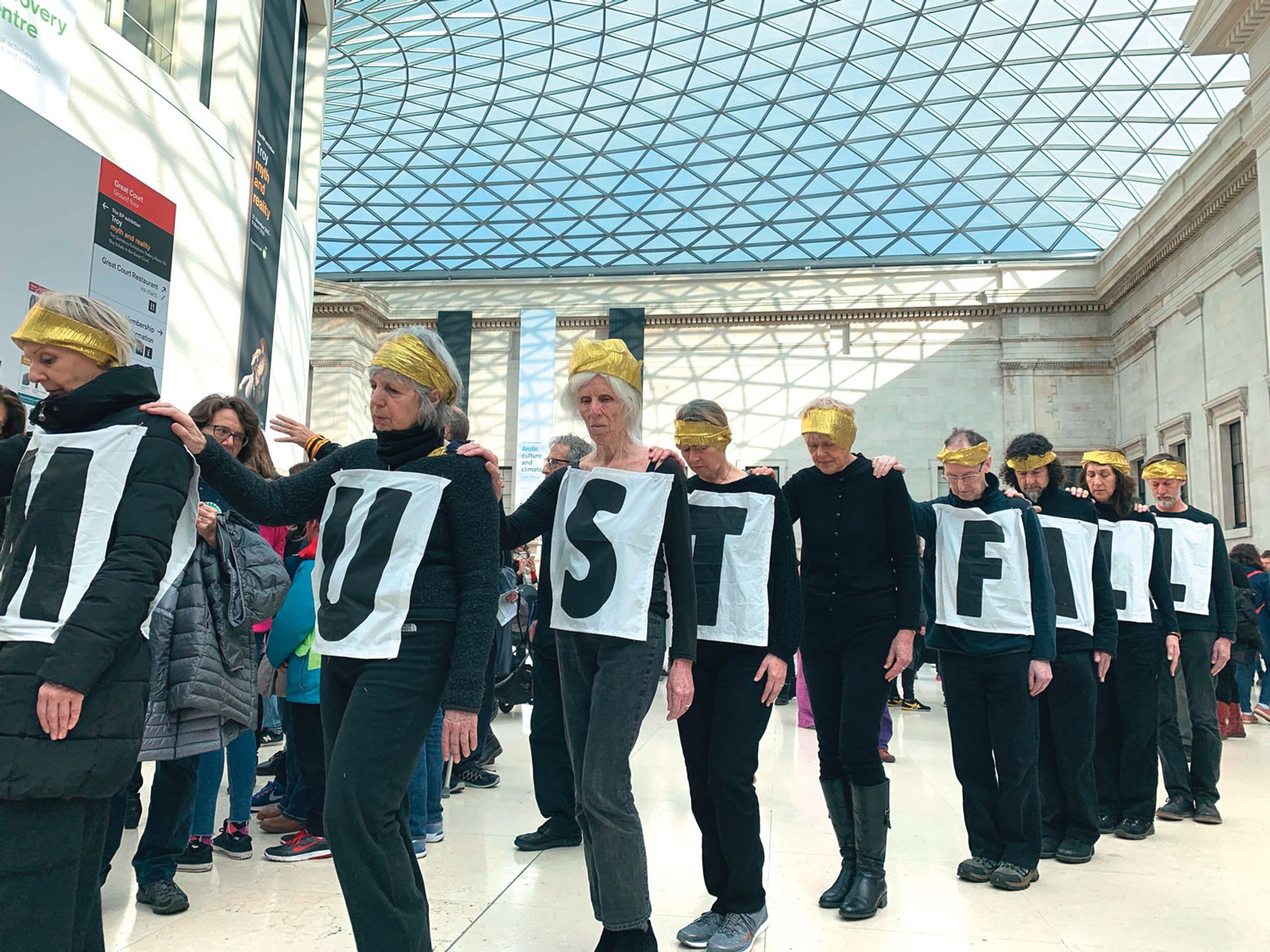 Saturday's action culminated in a crowd singing "BP must fall" while tearing up the energy firm's logo in the museum's Great Court Photo: Hannah McGivern