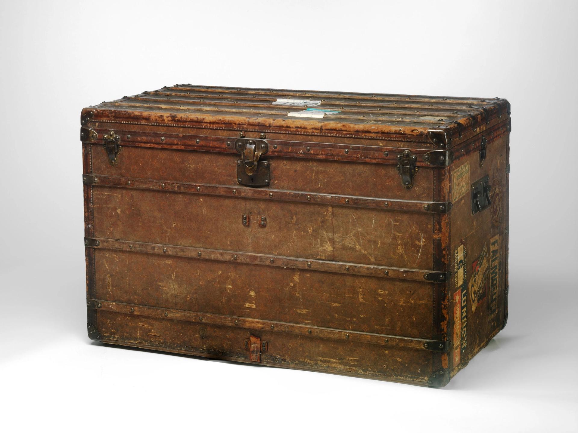 Now formally catalogued as a museum object, the trunk is covered in labels recording Grigsby’s travels in the grandest days of ocean liners, including voyages on the Lusitania, on the Titanic’s sister ship the Olympic, and with fellow passengers Scott and Zelda Fitzgerald on the Aquitania.