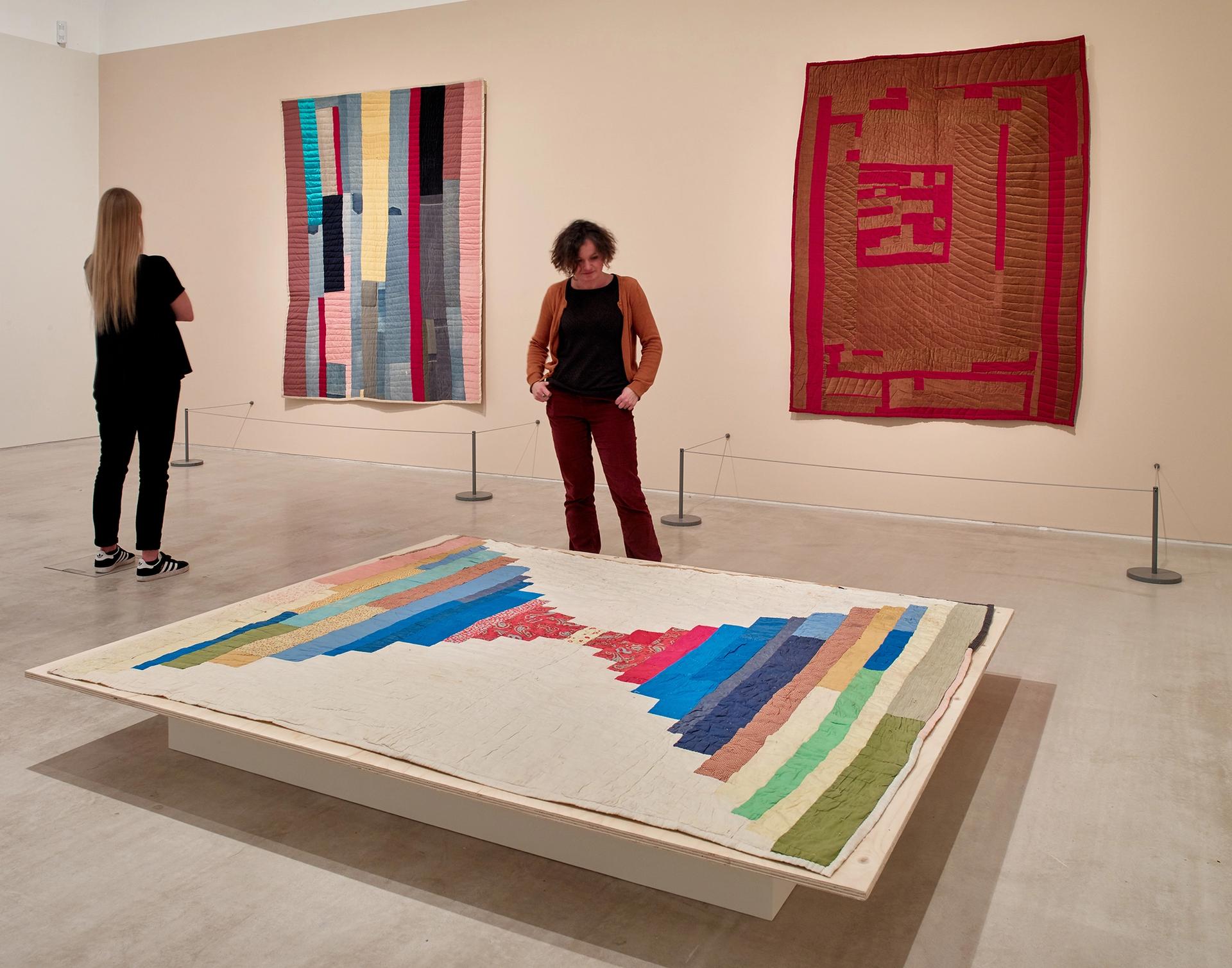 Such salutary artistry encompasses the work of Bill Traylor, who was born into slavery and spent his last years living on the streets of Montgomery, Alabama, painting and drawing on scraps of paper until his death in 1949. It can also be found in the work of Bessie Harvey, who sculpted dramatic apocalyptic visions from tangled tree roots in Alcoa, Tennessee. We see how Hawkins Bolden from Memphis, despite being blind from the age of eight, spent his long life assembling scarecrows, guardian figures and abstract assemblages from broken furniture, carpet scraps and discarded kitchenware. The musician, artist and gravedigger James Son Ford Thomas modelled skull heads from the clay of the Yazoo River, complete with pebble—and sometimes real—teeth. Then there’s the room of striking abstract quilts stitched by several generations of women from Gee's Bend in Alabama using recycled cloth, including worn out blue jeans and mattress ticking, which is an exhibition in its own right. Gee's Bend quilts have featured on American postage stamps yet, like so much of the work in this show, they are barely known outside the US.