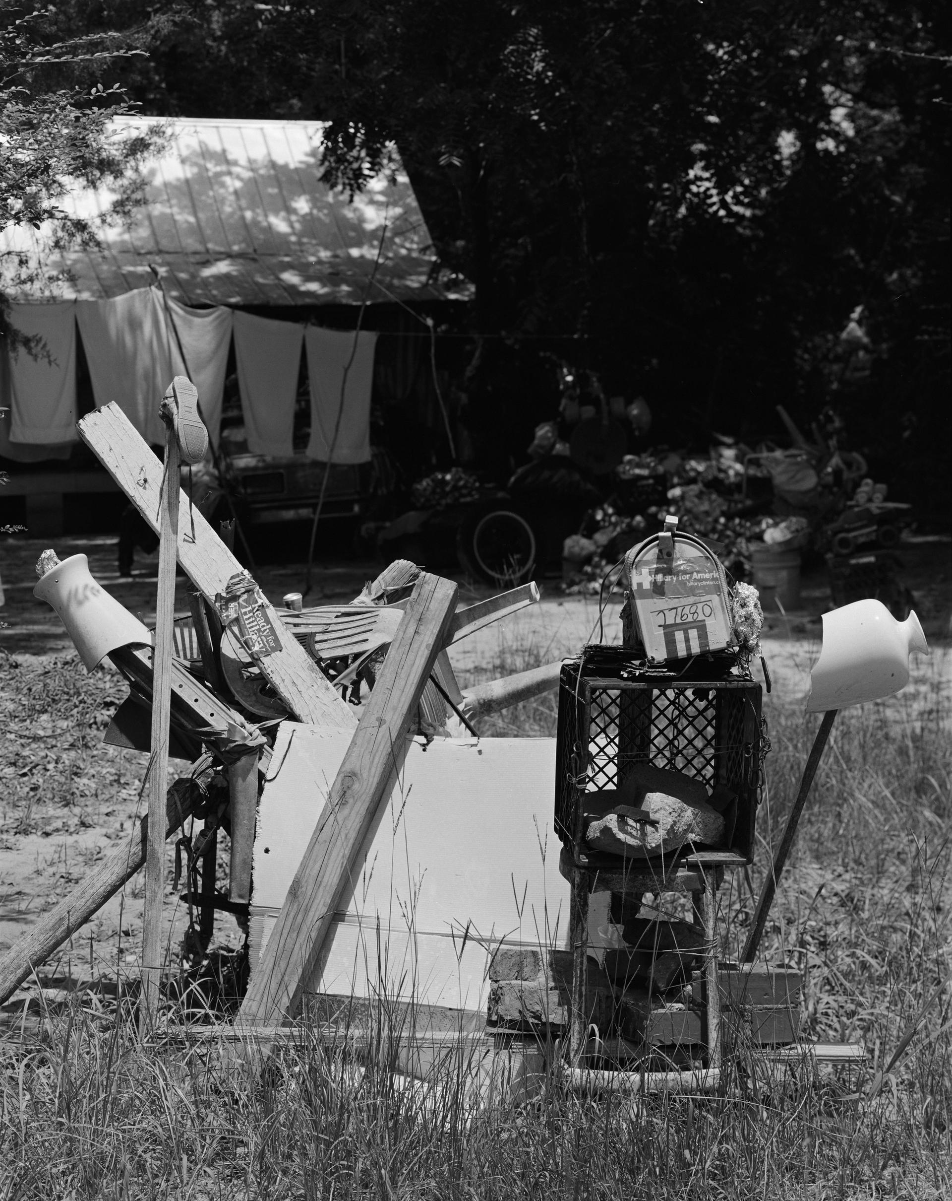 Much of this art draws on the tradition of the "Yard Show’" whereby artists constructed permanent outdoor installations around their homes. These elaborate and often extensive arrangements of sculptures and assembled objects created by artists including Dinah Young, Emmer Sewell and Joe Minter are here presented in large format photographs taken by Hannah Collins during her three years of research visits in and around the Southern US states. Collins’ striking photo pieces are both an essential record of a vanishing practice and distinctive artworks in their own right. They depict the original context for much of the work in We Will Walk and also help to give this exhibition its distinctive atmosphere and very particular sense of place.