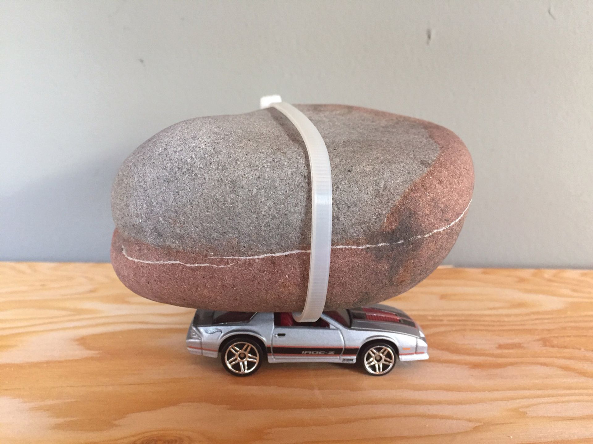 Like the inspirational Chinese objects known as scholars’ rocks, every stone in an offbeat display at Frieze Los Angeles has a distinctive je ne sais quoi. Each of them has been painted, adorned or otherwise manipulated by an artist, and all are for sale to online bidders, with the goal of raising money for the non-profit California arts organisation High Desert Test Sites, founded by Andrea Zittel. The auction began last weekend but gained momentum when the little rock stars made their fair debut in the backlot on Thursday. The artist Pam Lins decorated a rock to resemble what might be a schnauzer’s face, while Landon Wiggs attached his rock to a tiny toy car; Jim Kanter’s declares “NO I WON’T,” with the letters outlined in yellow sand. “I’m in love with this,” declared one fairgoer, Farhad Farman, admiring a rock encased in cling wrap by the artist Gerald Clarke. He let out a sigh. “Inverted pleasure.”