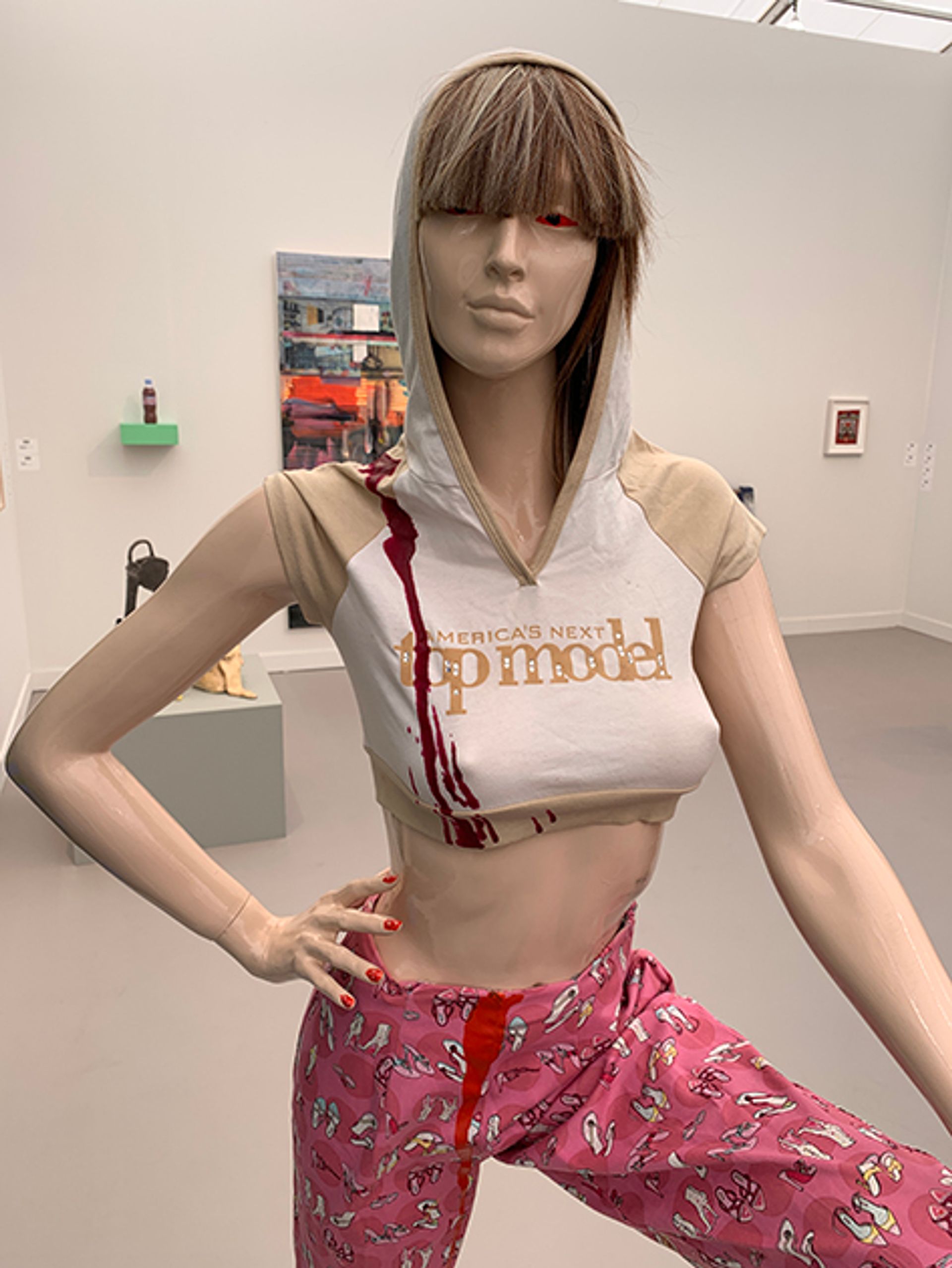 Who is that supermodel in the corner? It’s not really a pin-up but a mannequin made by the New York-based artist K8 Hardy called Look 14 (2016). The striking sculptural piece, on show at Karma International gallery, is typical of K8’s subversive take on beauty today. “She uses fashion as a sculptor would use clay,” says Geraldine Belmont of the gallery. “K8 was already focusing on all those things that are hip now such as queer identity and selfies.” This moody model looks even more glamorous with its hair blowing thanks to a nearby air duct which is sending gales through the aisles. “That wasn’t planned, by the way,” added Belmont.