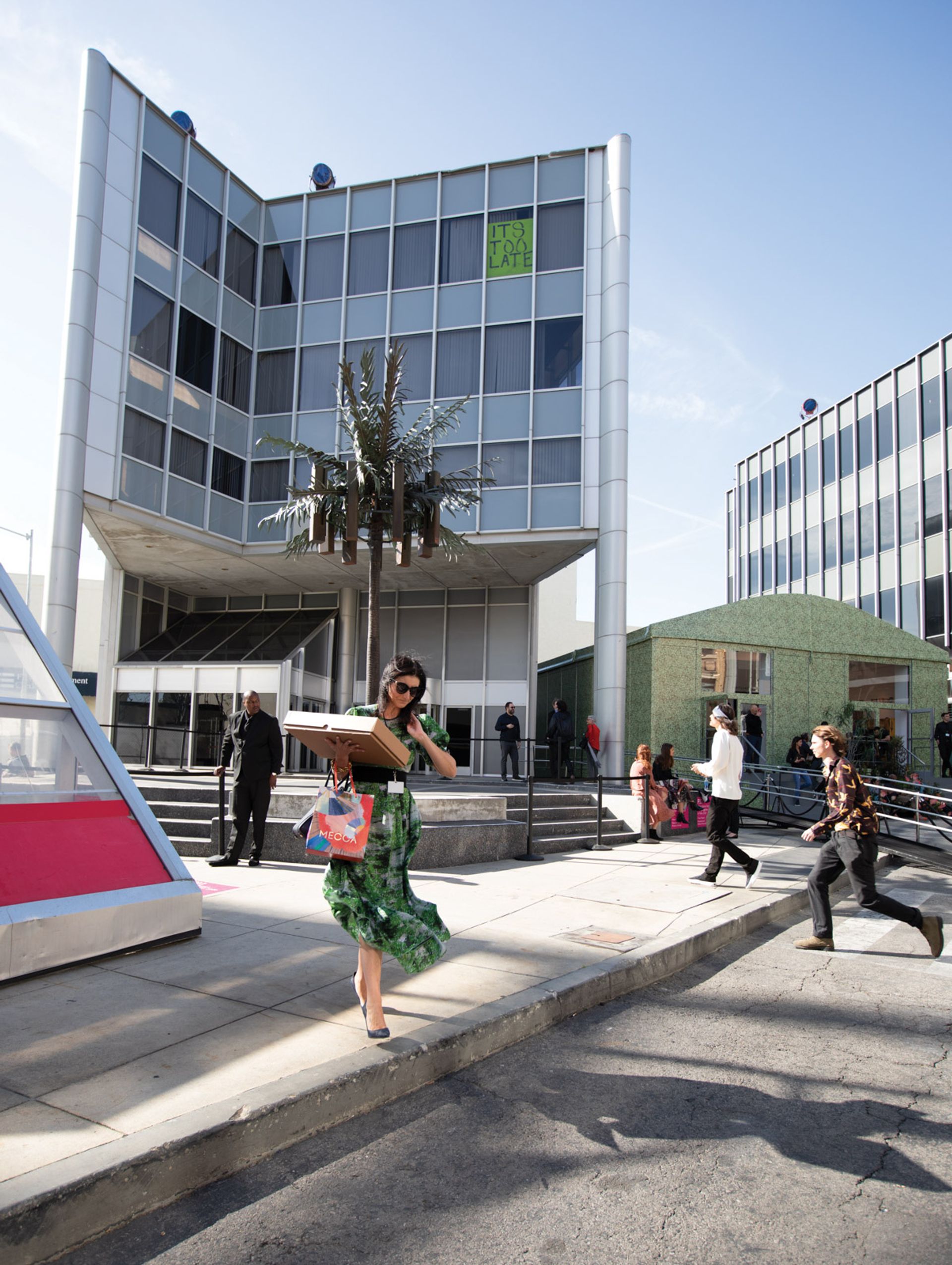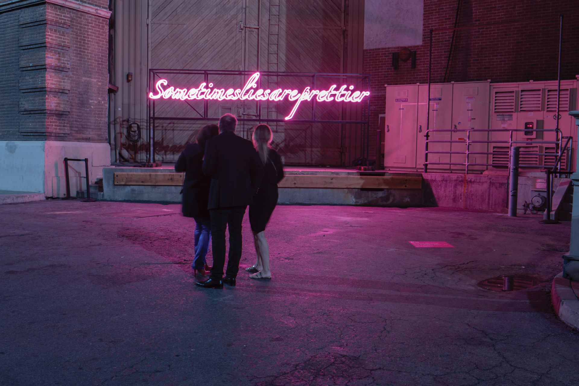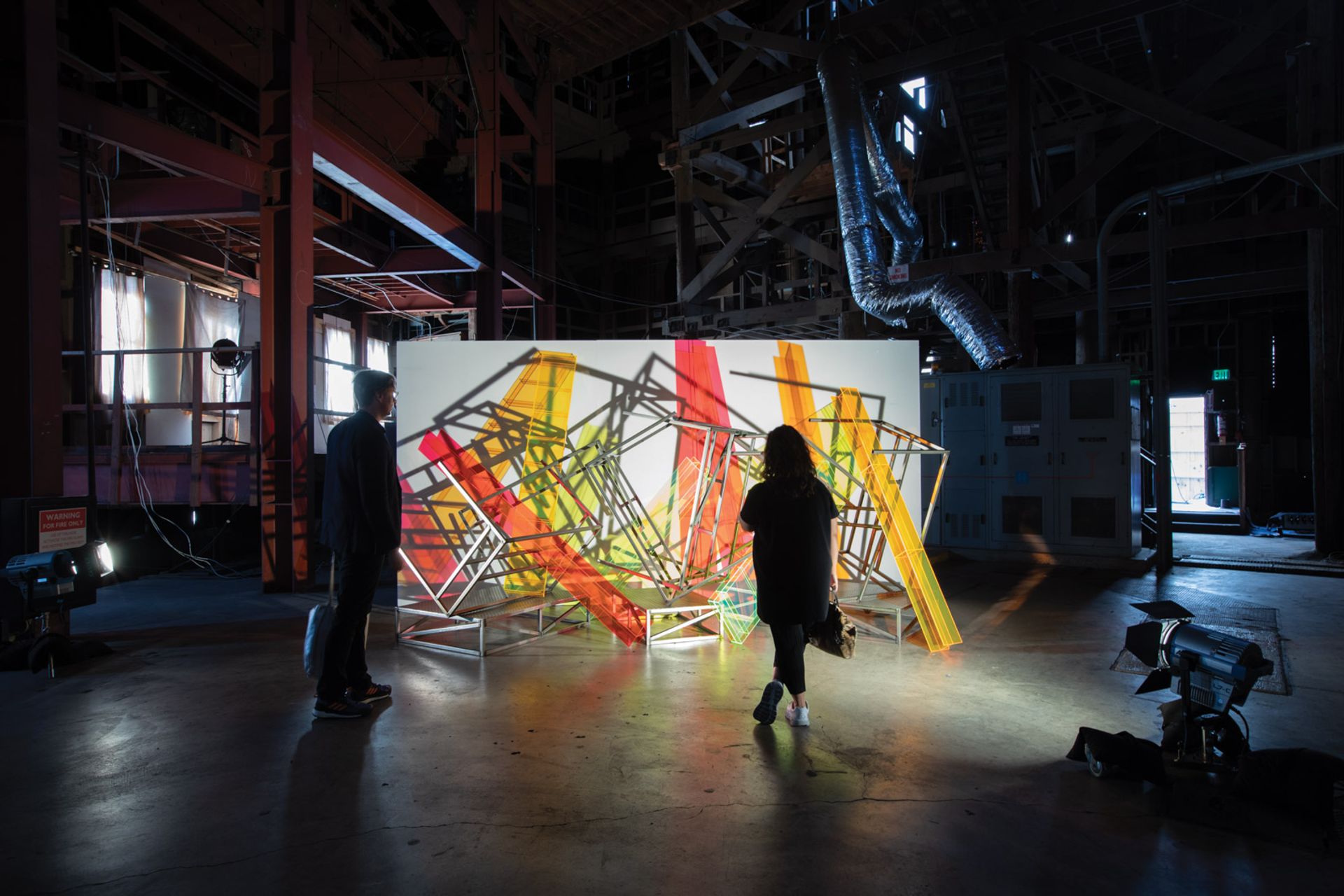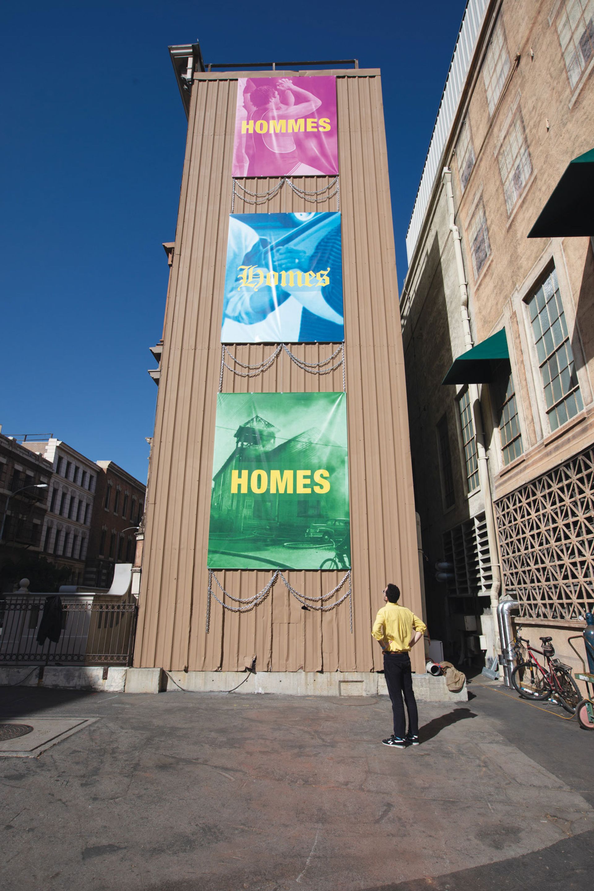 And happenstance is something the organisers were aware of as the backlot is “a space that already has its own particular set of parameters”, Tompkins Rivas says. For example, Barbara Kasten’s sculpture Intervention (2018), with industrial-looking steel and aluminium rods casting shadows against plexiglass, “makes perfect sense” inside the fake buildings with their complex support systems holding up the façades. Tompkins Rivas adds that although the buildings may look real on the outside, they are not watertight so the selected works had to be robust enough to take the rain. Thankfully, this year’s outlook is as sunny as a painted backdrop.