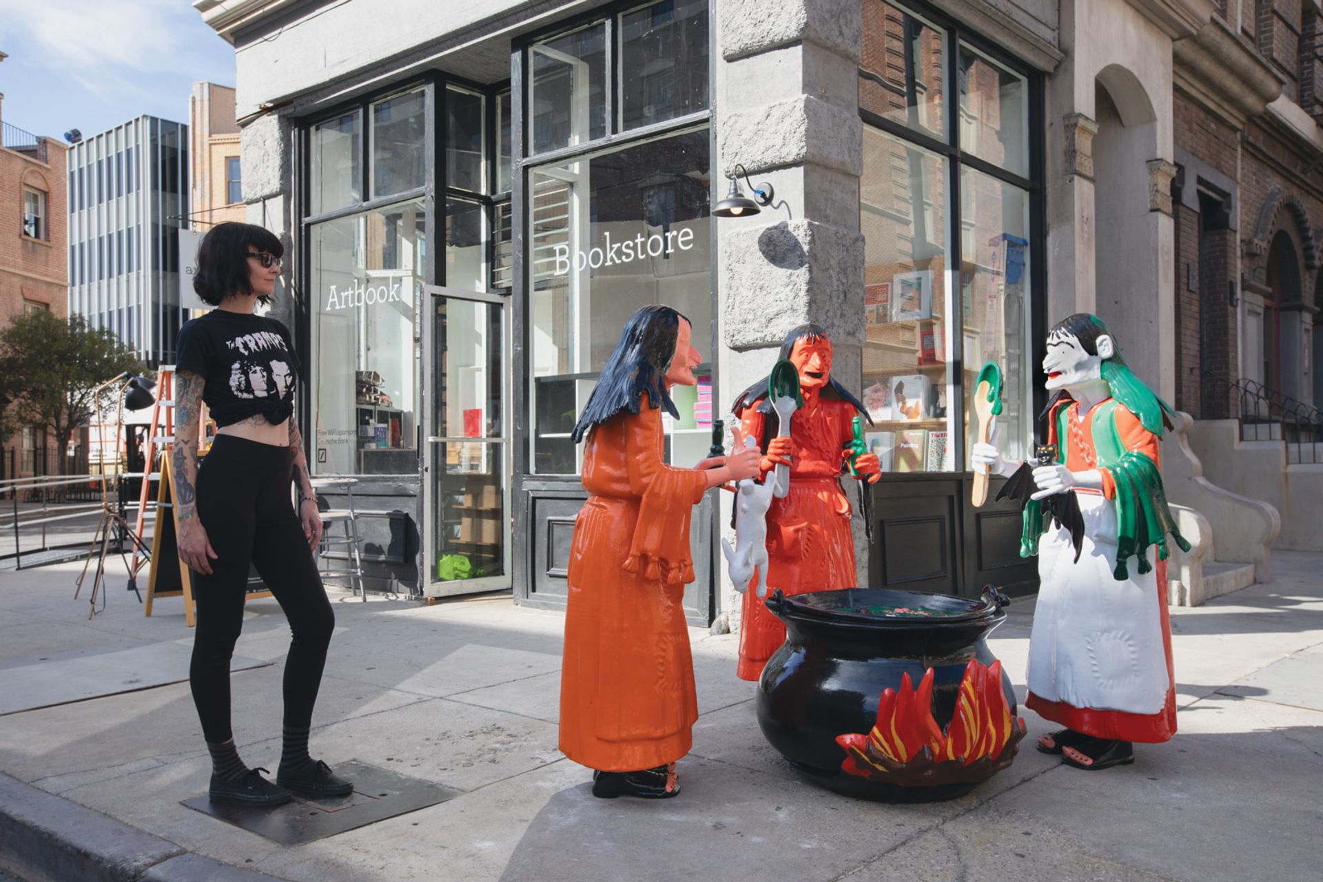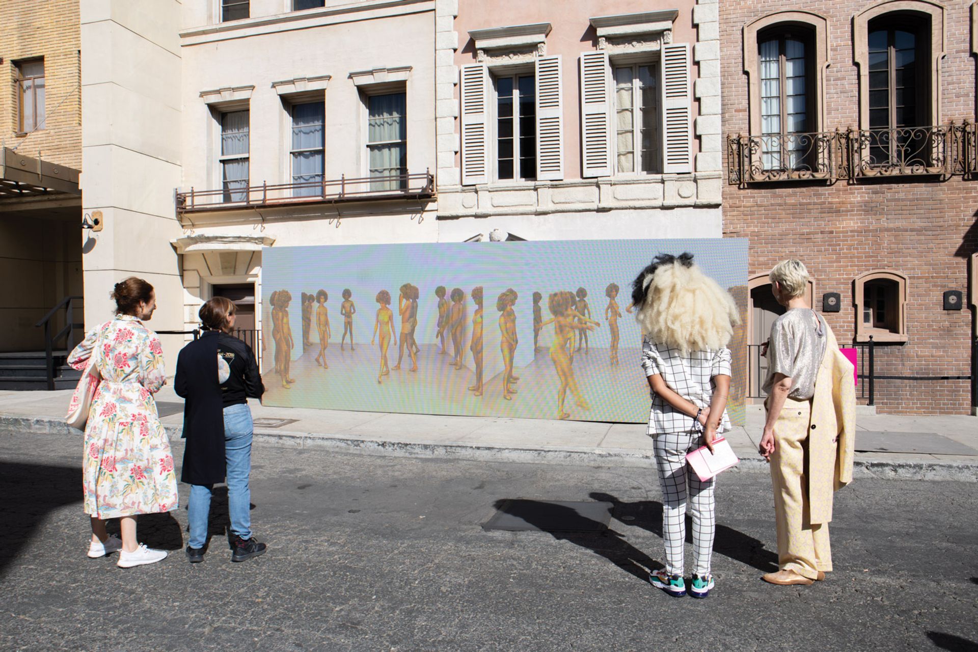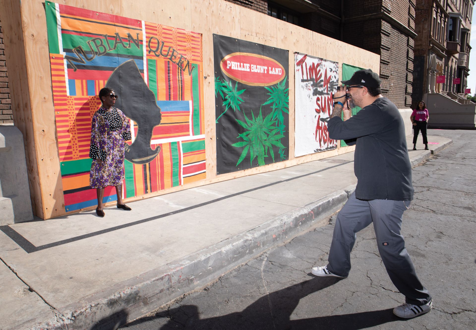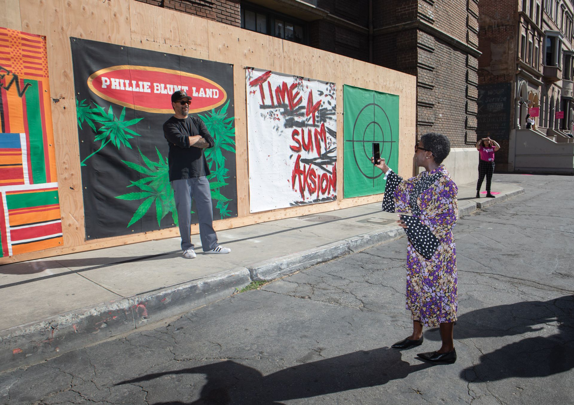 And happenstance is something the organisers were aware of as the backlot is “a space that already has its own particular set of parameters”, Tompkins Rivas says. For example, Barbara Kasten’s sculpture Intervention (2018), with industrial-looking steel and aluminium rods casting shadows against plexiglass, “makes perfect sense” inside the fake buildings with their complex support systems holding up the façades. Tompkins Rivas adds that although the buildings may look real on the outside, they are not watertight so the selected works had to be robust enough to take the rain. Thankfully, this year’s outlook is as sunny as a painted backdrop.