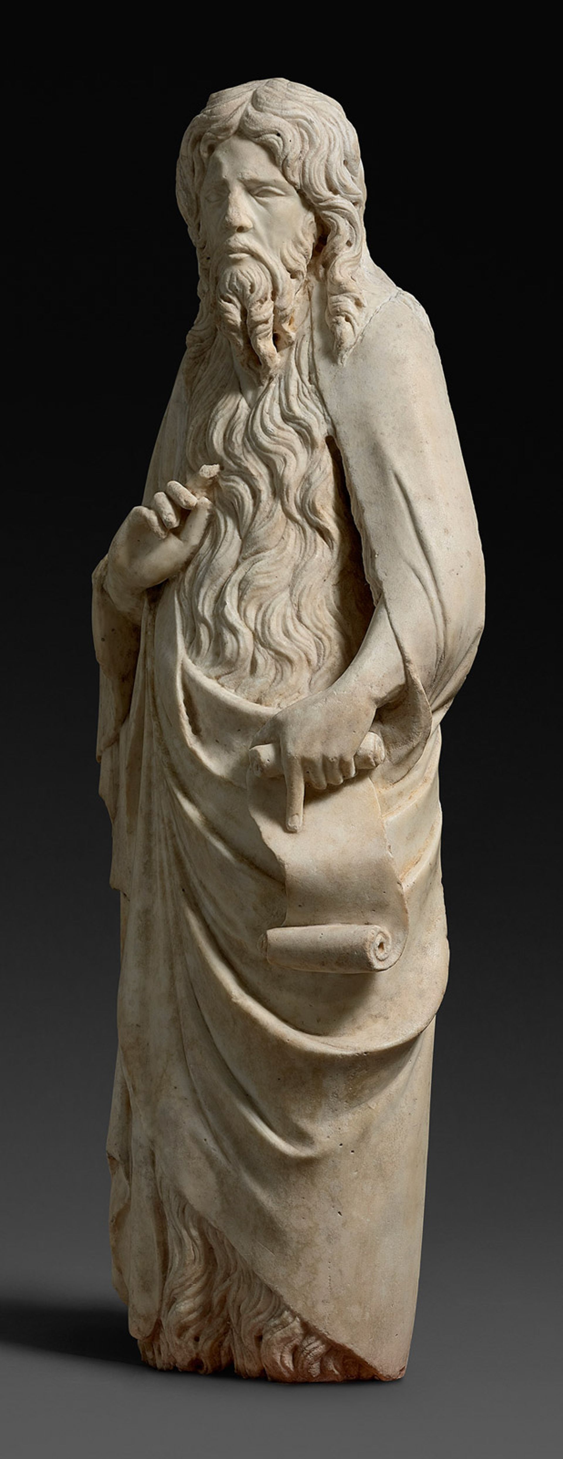 This late-Gothic marble depiction of Saint John the Baptist (around 1350-60) is, Stuart Lochhead says, a new discovery by the Tuscan sculptor Nino Pisano, the son of Andrea Pisano. In a 2005 article, the piece was described by the Italian Renaissance scholar Francesco Caglioti as a “splendid St John the Baptist” by the artist, unpublished and in a private collection outside of Italy. This sculpture was the basis for the figure of St John in the marble polyptych (late 1360s or early 1370s) by Nino’s brother Tommaso in the Basilica of San Francesco, Pisa. The back is only roughed out, suggesting it was meant to sit in a niche, and Lochhead thinks it is likely it “came from a similar polyptych in the Pisa area, the other components of which are either lost or unidentified”. Stuart Lochhead Sculpture has priced this piece at $2.5m. Nino Pisano’s St John the Baptist (around 1350-60). For sale with Stuart Lochhead Sculpture