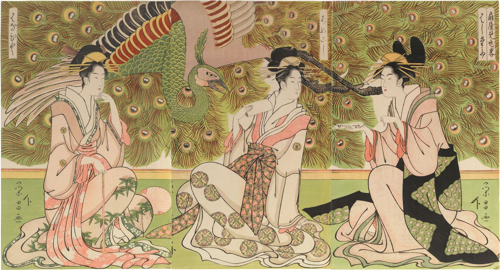 Chokasai Eisho's A Glimpse of the Ogiya: Hashidate, Nanakoshi and Hanabito, from the Baron J. Bachofen von Echt Collection of Golden Age Ukiyo-e on view during Asia Week New York at Scholten Japanese Art