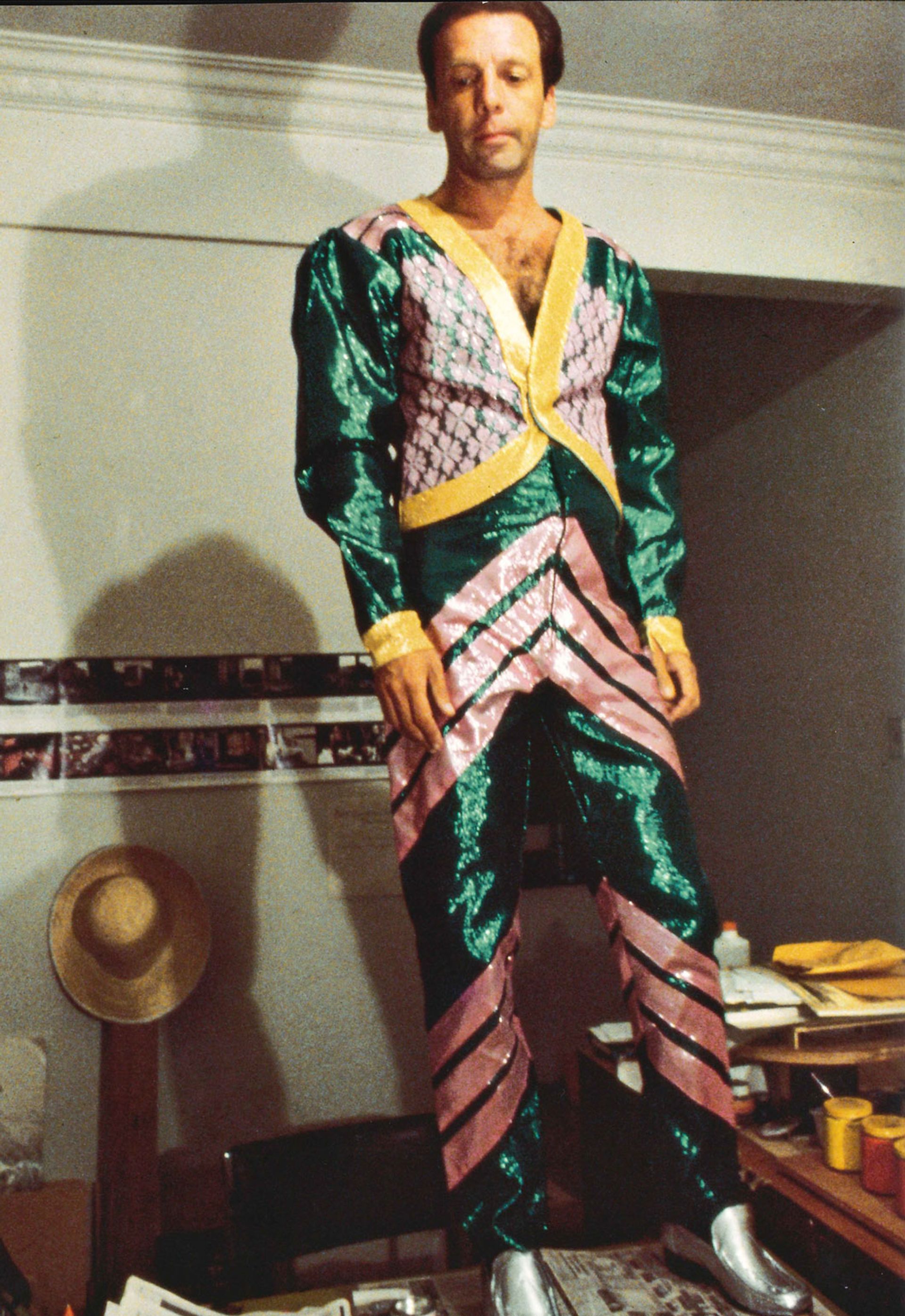 Hélio Oiticica wearing a costume of the Passistas da Mangueira Photo: Andreas Valentin, 1979; courtesy of Masp