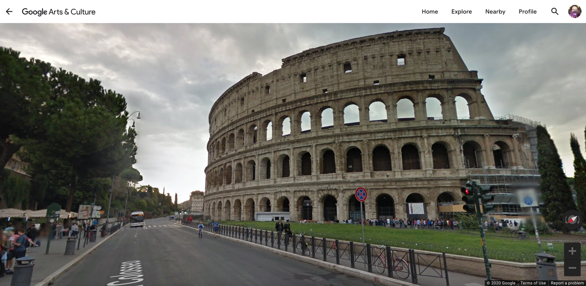 A Google Street View of the Colosseum in Rome