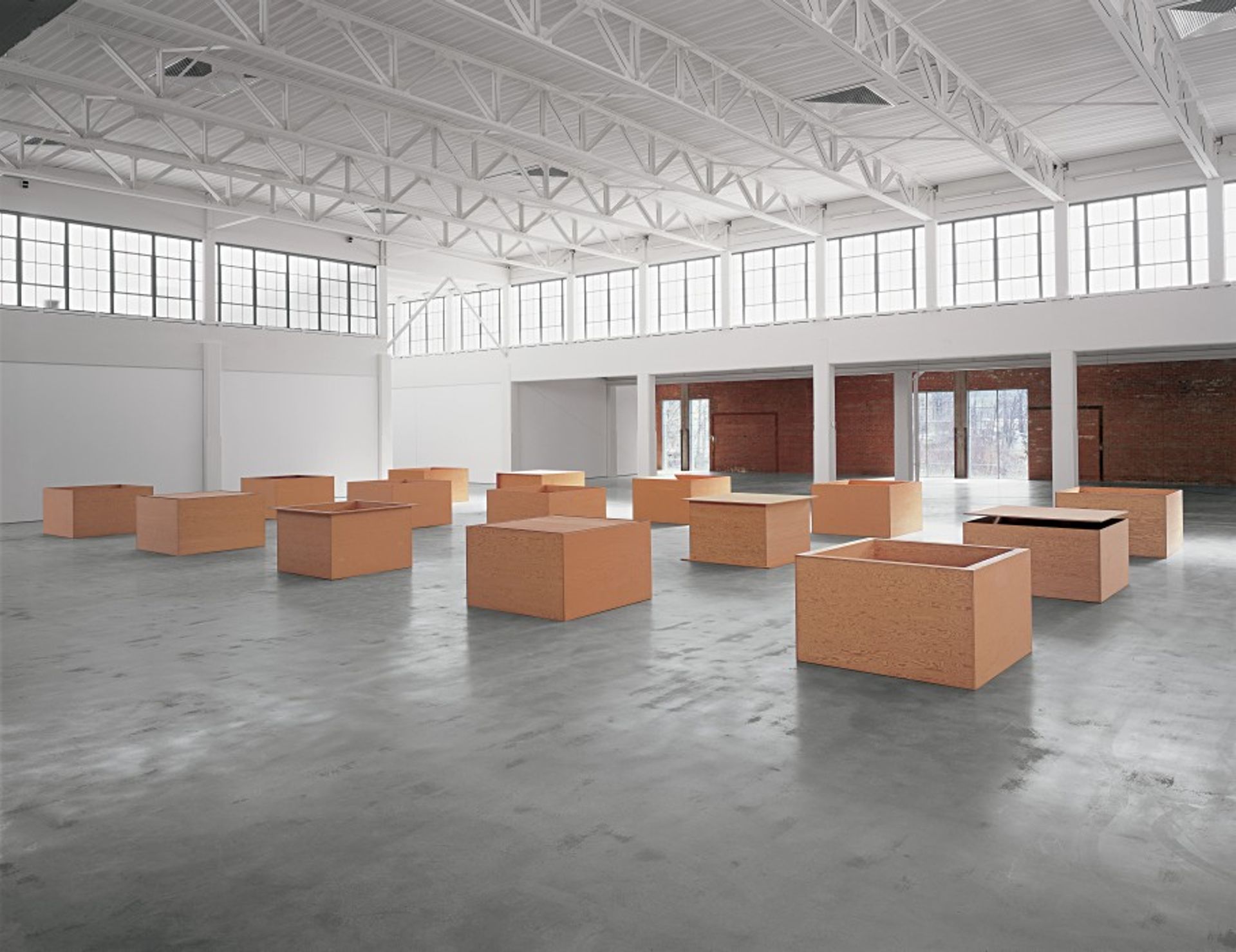 In ensembles such as Marfa’s aluminium boxes and the 15 plywood boxes from 1976, on view at Dia Beacon in Upstate New York (also temporarily closed), human reference finally insinuated itself into Judd’s art. Respectively consistent external dimensions in each of these ensembles make space for starkly and observably varying internal structural variations. Together, as I wrote of the plywood group when they were first presented in Manhattan, these works materialise not the human image but the metaphysical condition of human individuals: being at once as similar and as different as possible.