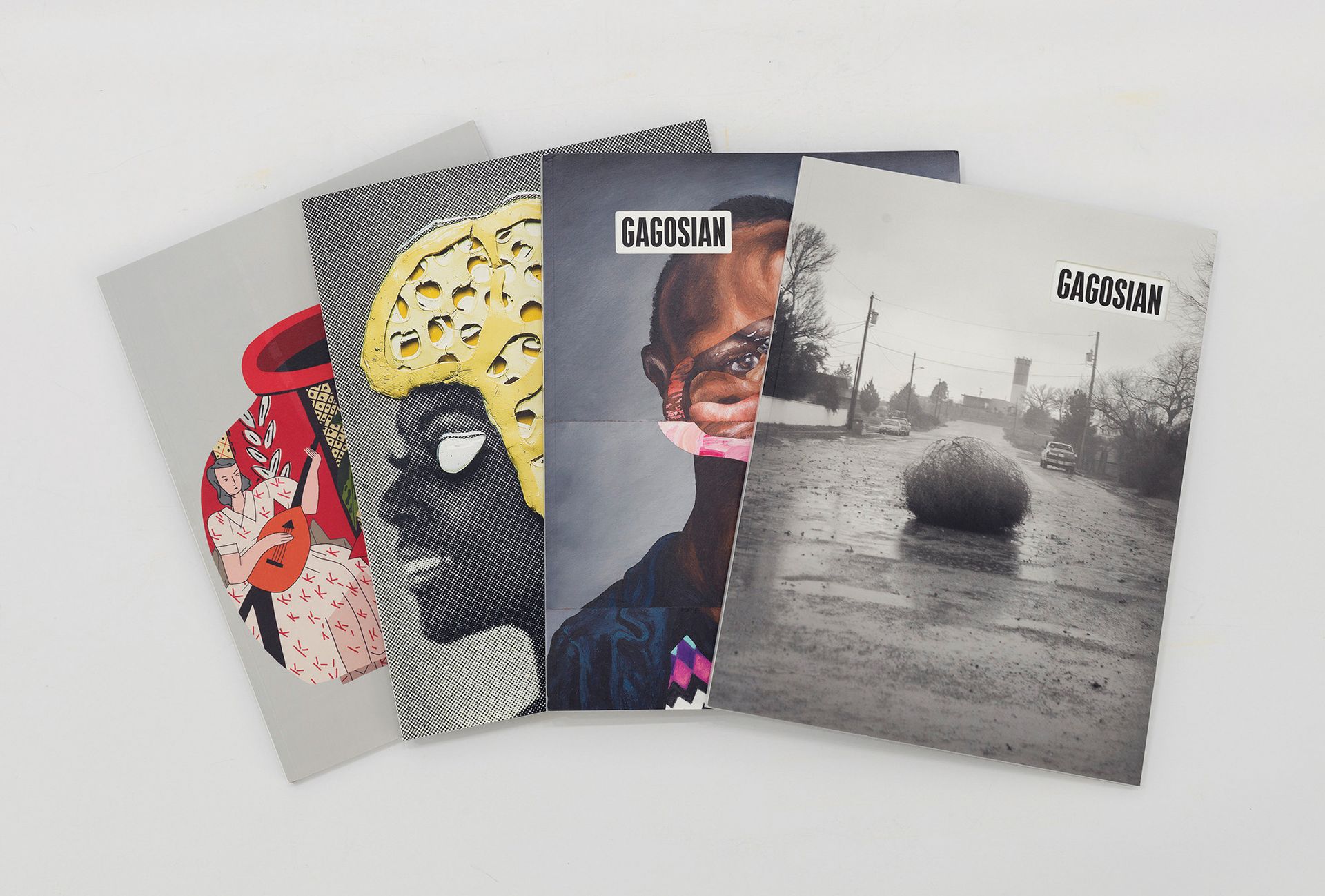 Issues of Gagosian Quarterly Courtesy Gagosian. Artwork; left to right: © Jonas Wood; © Ellen Gallgher; © Nathaniel Mary Quinn; © Christopher Wool