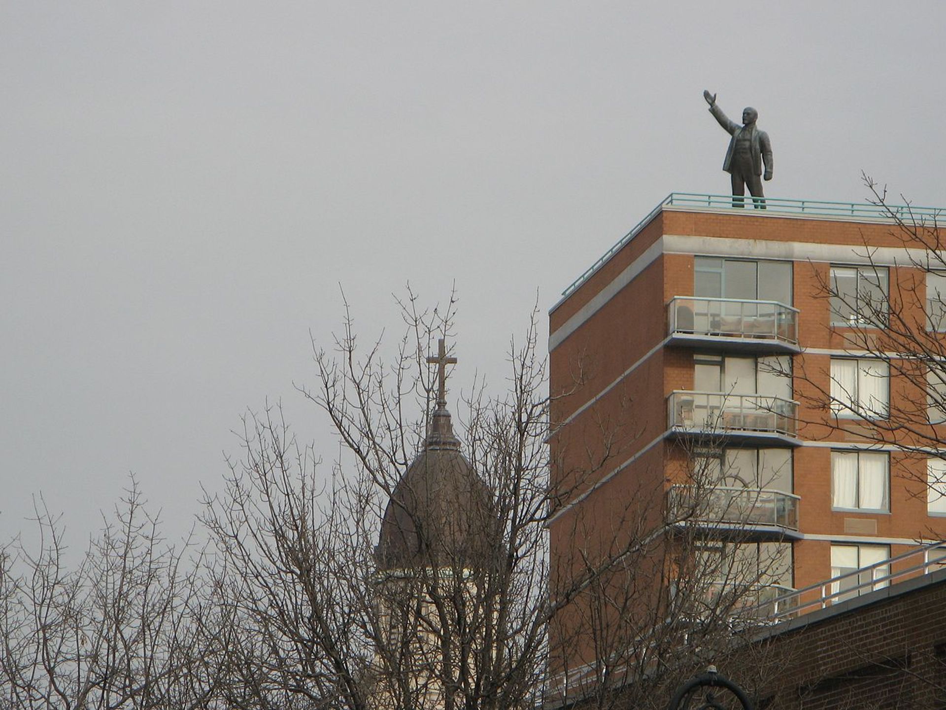 A statue of Vladimir Lenin, pictured in its former location in Red Square, now sits atop Bureau gallery. olekinderhook/ Wikimedia Commons