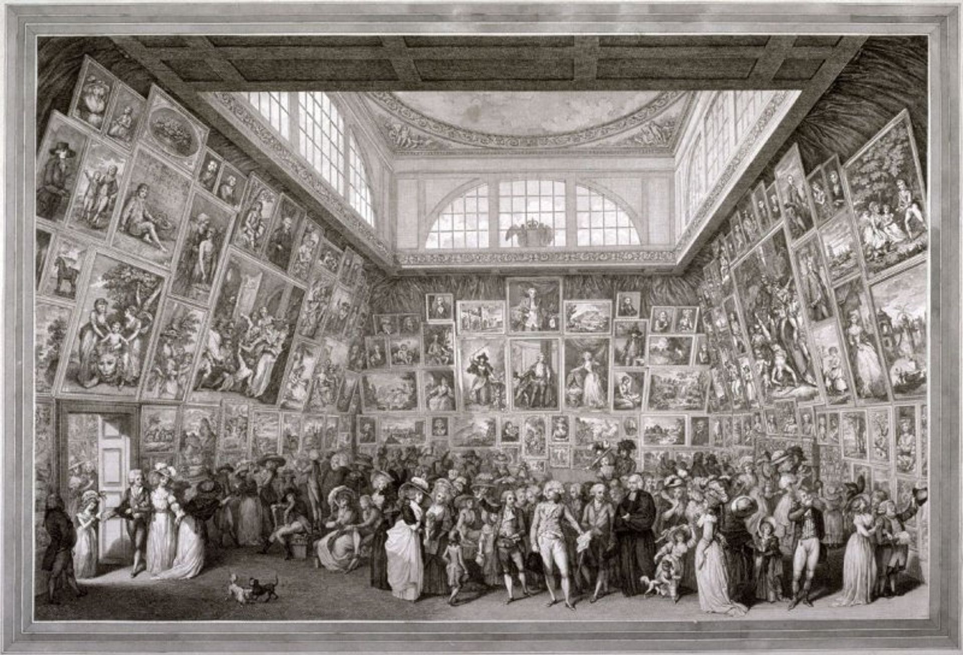 An engraving of The Exhibition at the Royal Academy, by J.H. Ramberg (1787) Fine Arts Museums of San Francisco