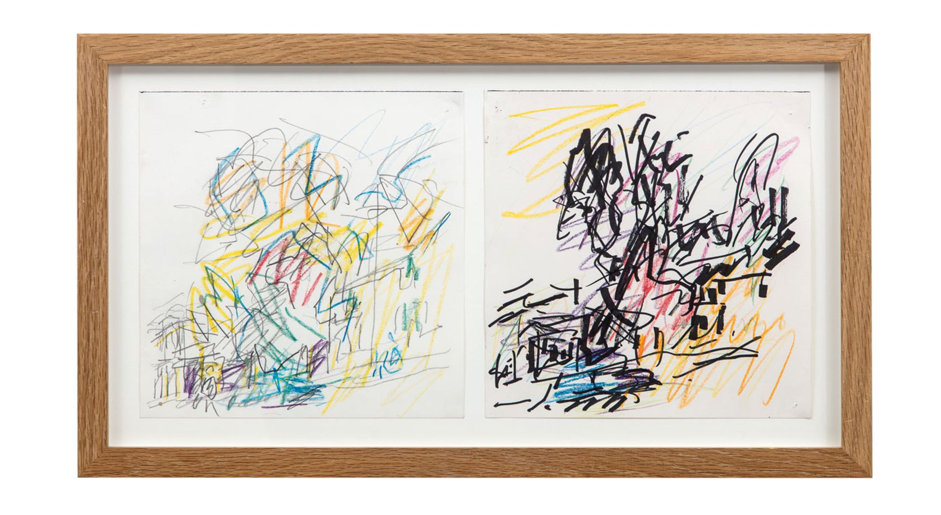 Two 2006 studies in ink, crayon and pencil for Auerbach’s Park Village East series Courtesy Private Collection, London, and Alma Zevi