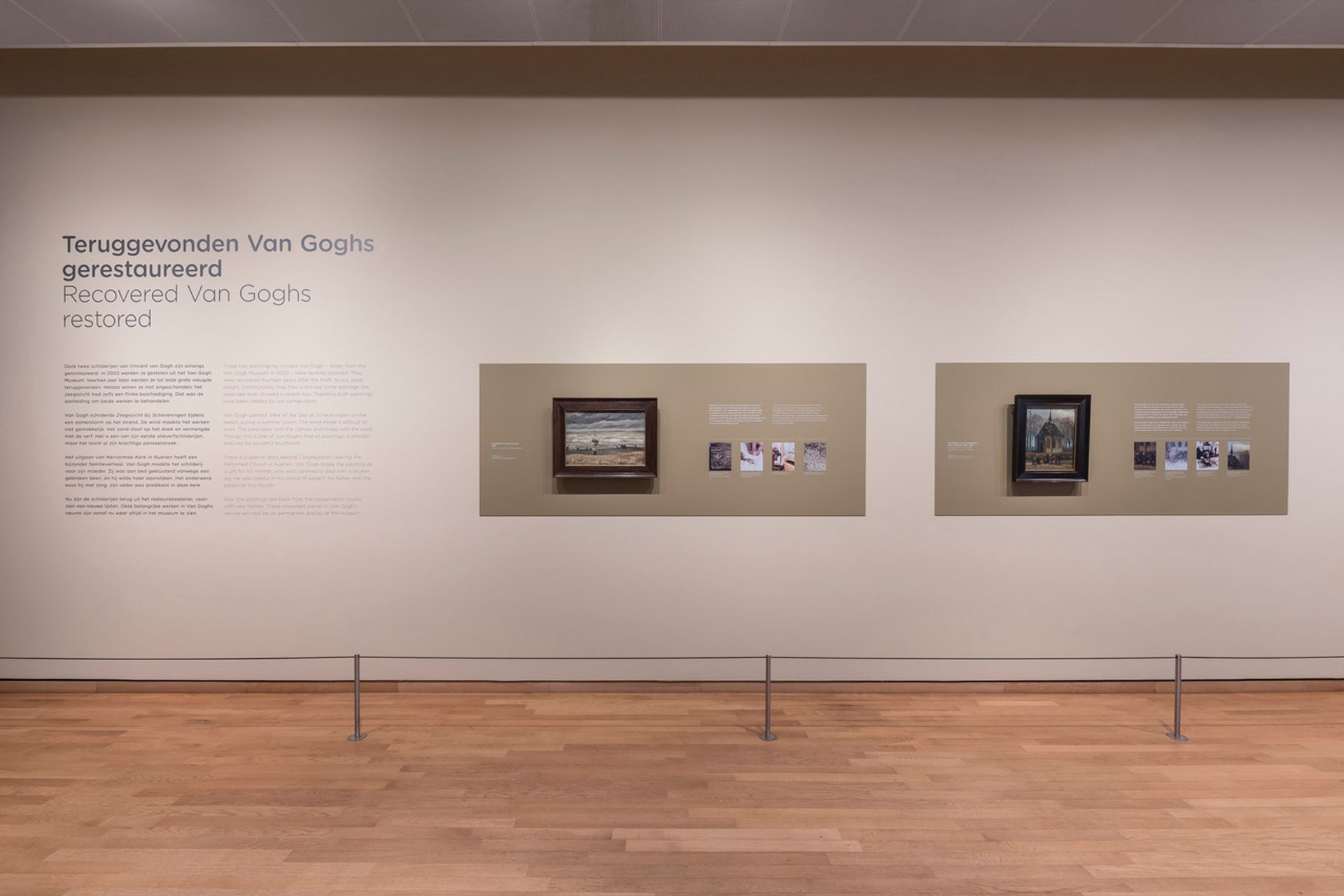 Vincent van Gogh’s View of the Sea at Scheveningen (1882) and Congregation Leaving the Reformed Church in Nuenen (1884-85) on display at the Van Gogh Museum, Amsterdam in 2019, after their recovery and conservation Courtesy of the Van Gogh Museum, Amsterdam