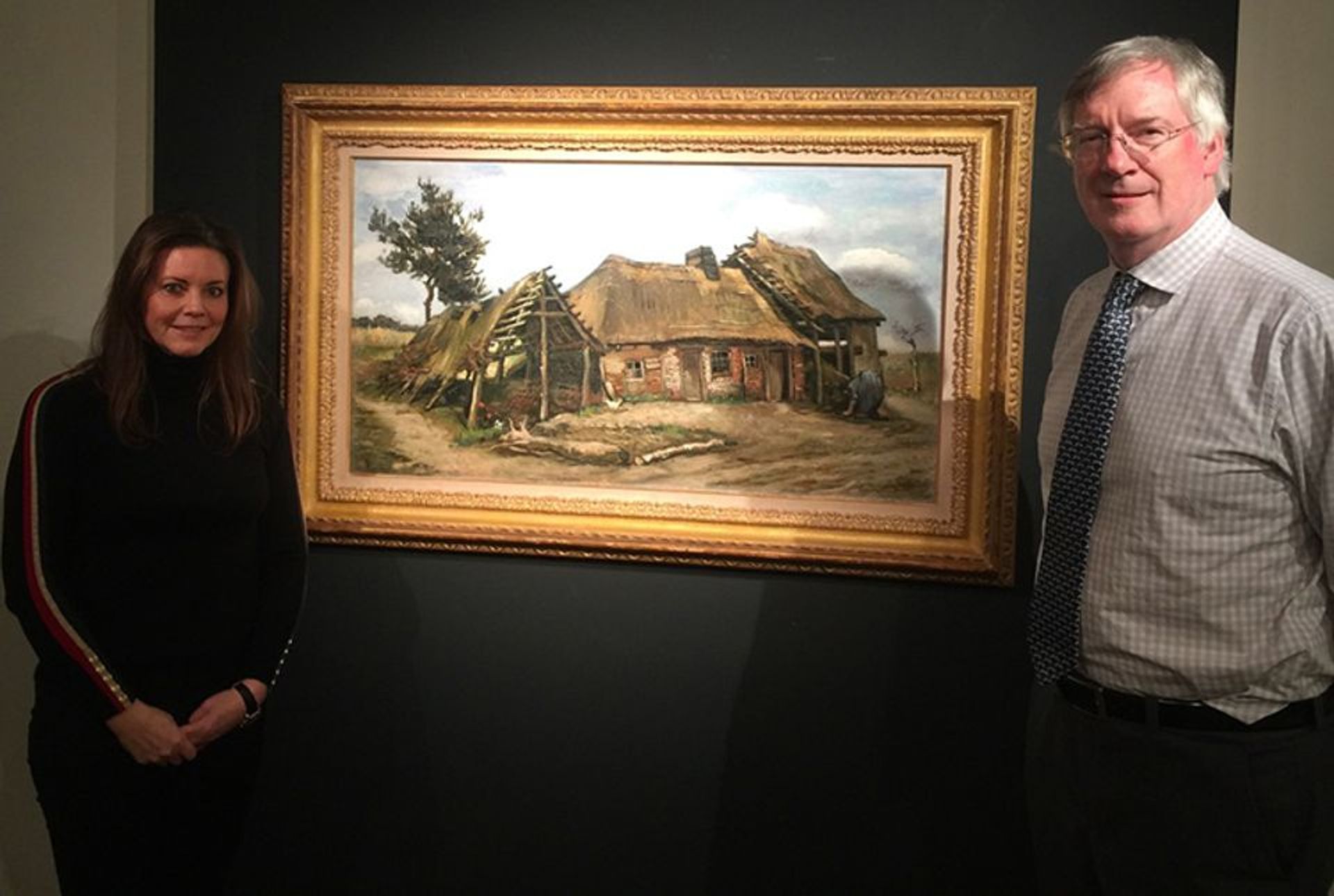 James Roundell (Dickinson’s specialist) and Emma Ward (Dickinson’s managing director) with Van Gogh’s Peasant Woman in front of a Farmhouse © Martin Bailey