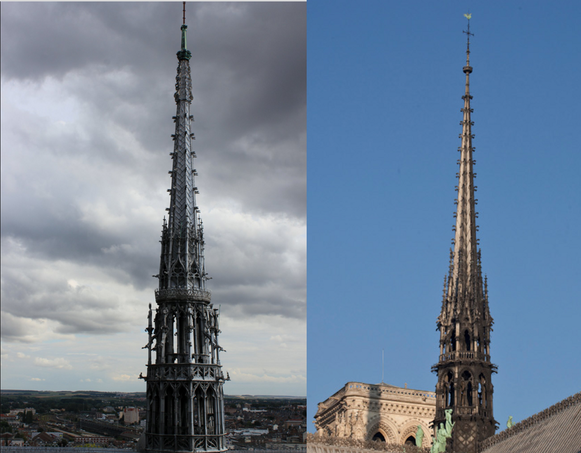 The spires of Notre-Dame of Paris (right) and Notre-Dame of Amiens