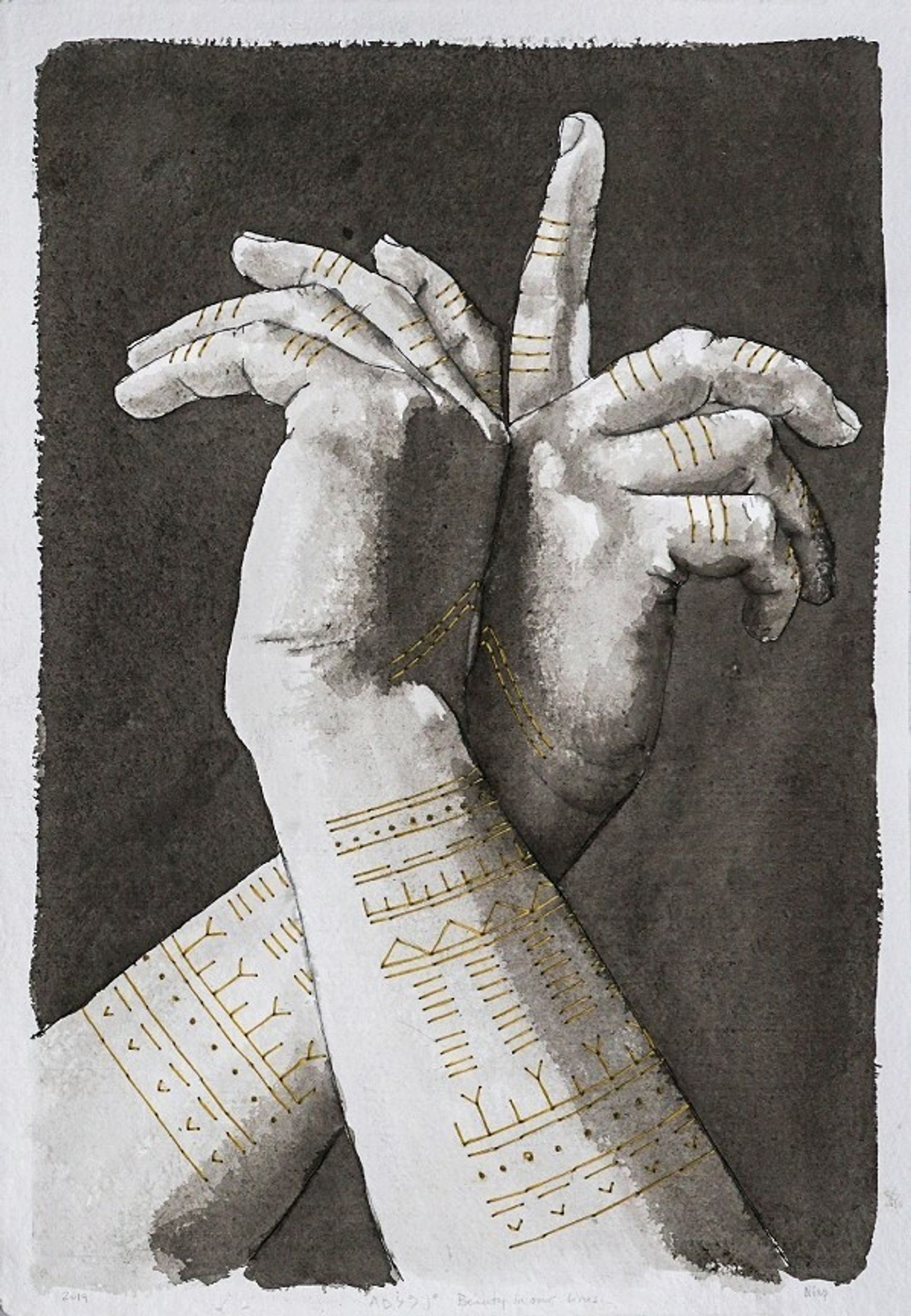 Niap's ink and thread on paper work, "Beauty In Our Lines." Courtesy of the artist and Feheley Fine Arts