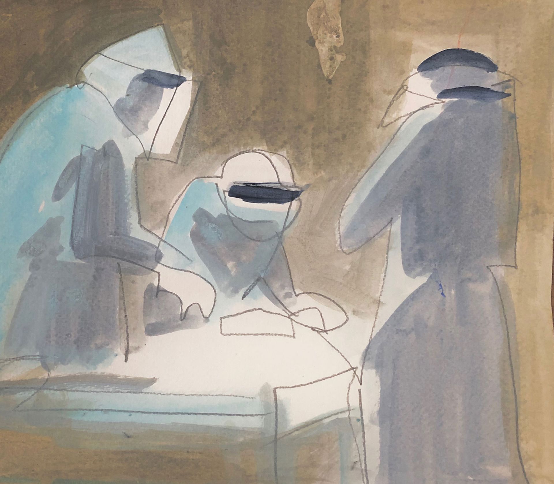 But mention Barbara Hepworth’s Hospital Drawings of late 1940s and Hamilton’s response is dismissive: “I wasn’t really aware of them before—they are a bit worthy and soppy for me.” For now, Susie Hamilton is chronicling the coronavirus crisis in an improvised studio in her kitchen, and like all of us she is looking forward to lockdown being over. “When I’m back in the studio I want to paint some large sickly pale canvases based on these drawings,” she says.