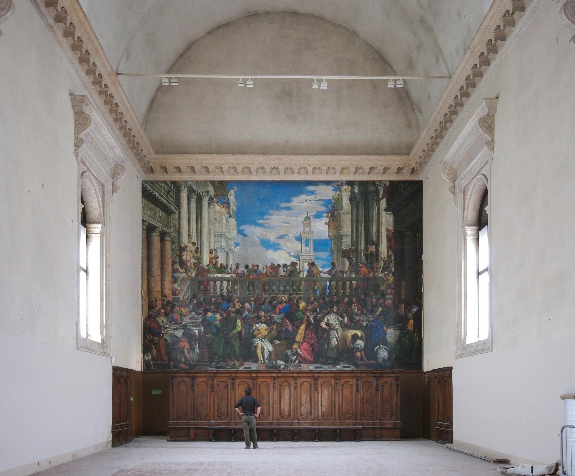 Factum’s facsimile of The Wedding Fest at Cana in the space for which the original was painted, the refectory designed by Palladio on the island of San Giorgio, Venice Photo: Factum Foundation