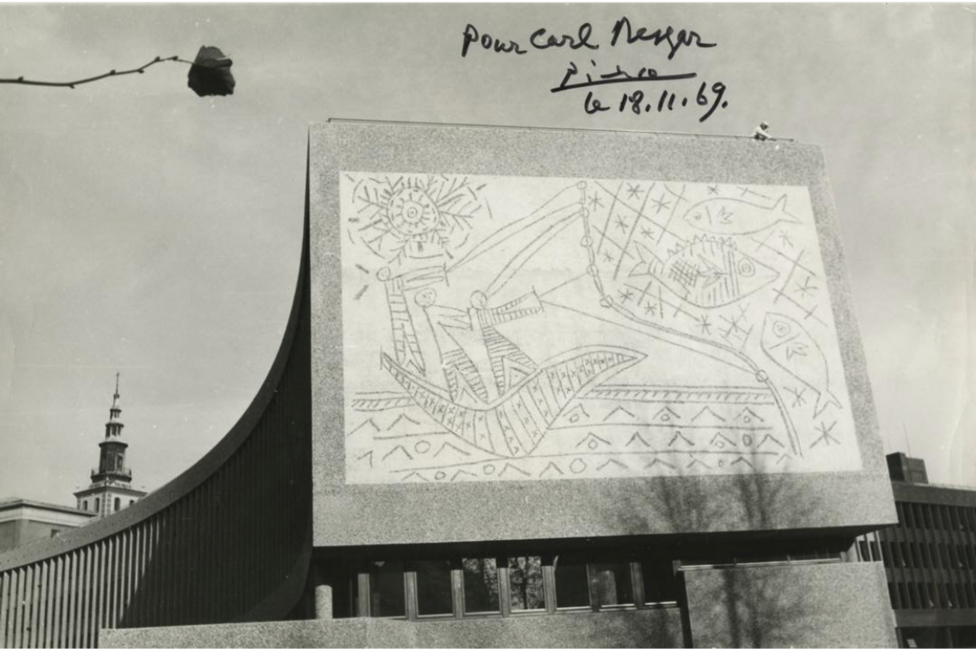 A photo of the Fishermen with a dedication from Picasso to Nesjar Courtesy of Gro Nesjar Greve