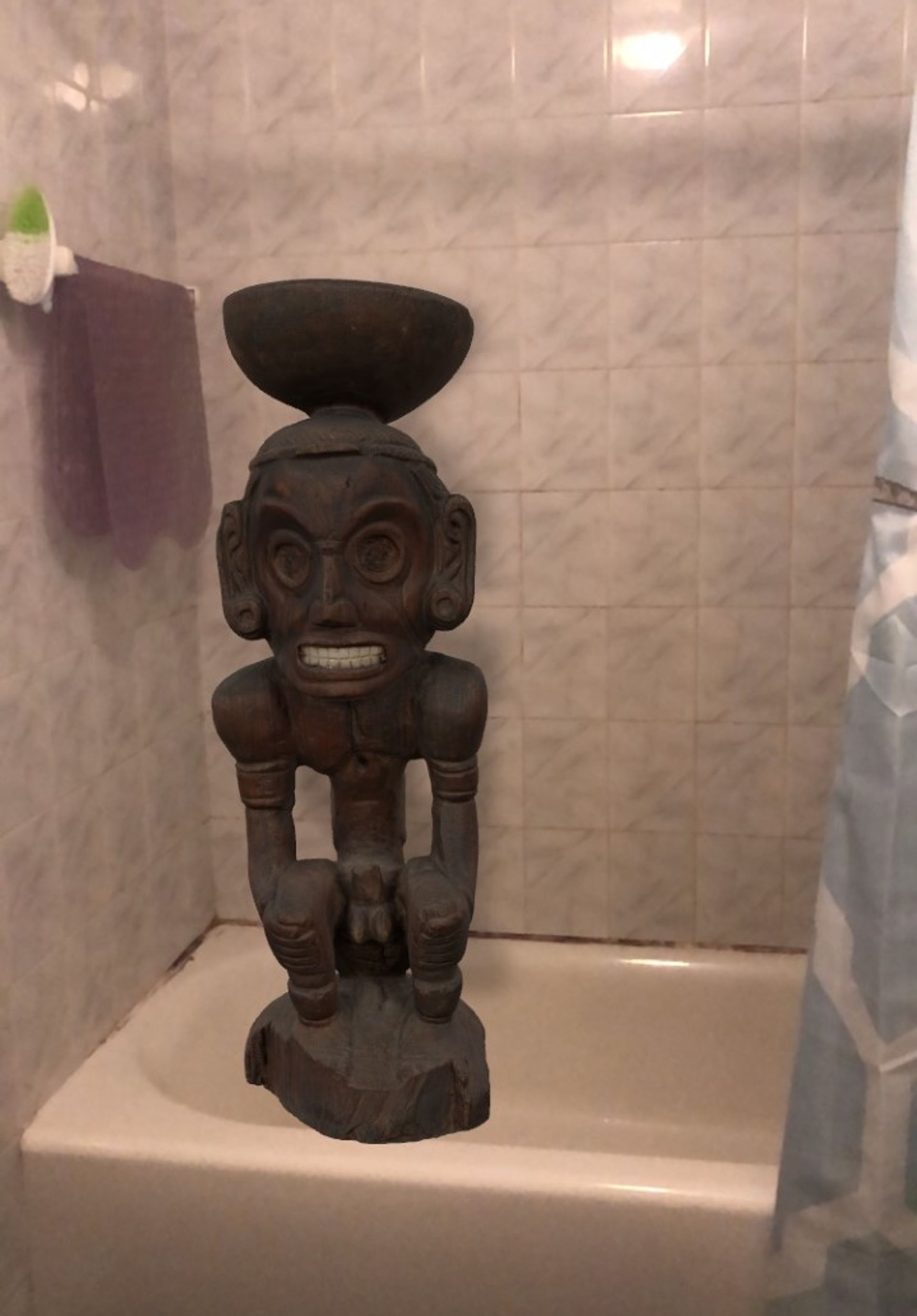 The Metropolitan Museum of Art's zemí cohoba stand, transplanted into a bathtub Sara Kenney