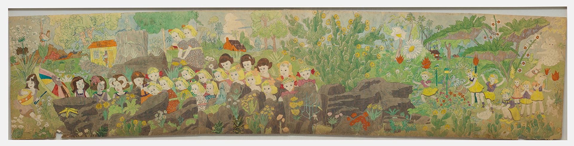 One side of Henry Darger's untitled, undated watercolour and pencil on paper at the Museum of Modern Art © 2017 Henry Darger Artists Rights Society (ARS), New York