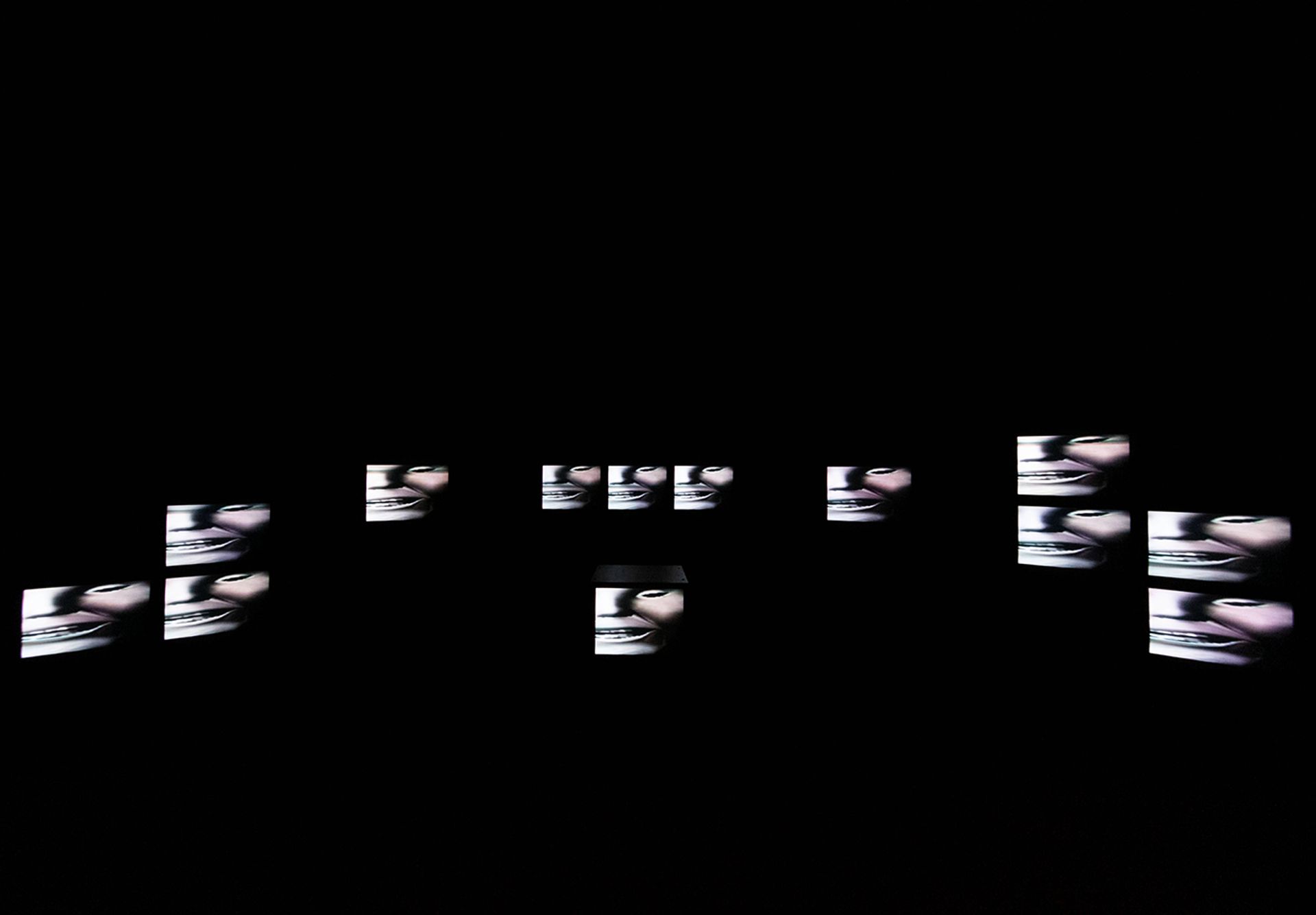 Gretchen Bender's video installation Dumping Core (1984), whose 13 monitors have been turned off during the shutdown of the Museum of Modern Art © 2020 Gretchen Bender, courtesy of the Estate of Gretchen Bender; Photo: John Wronn