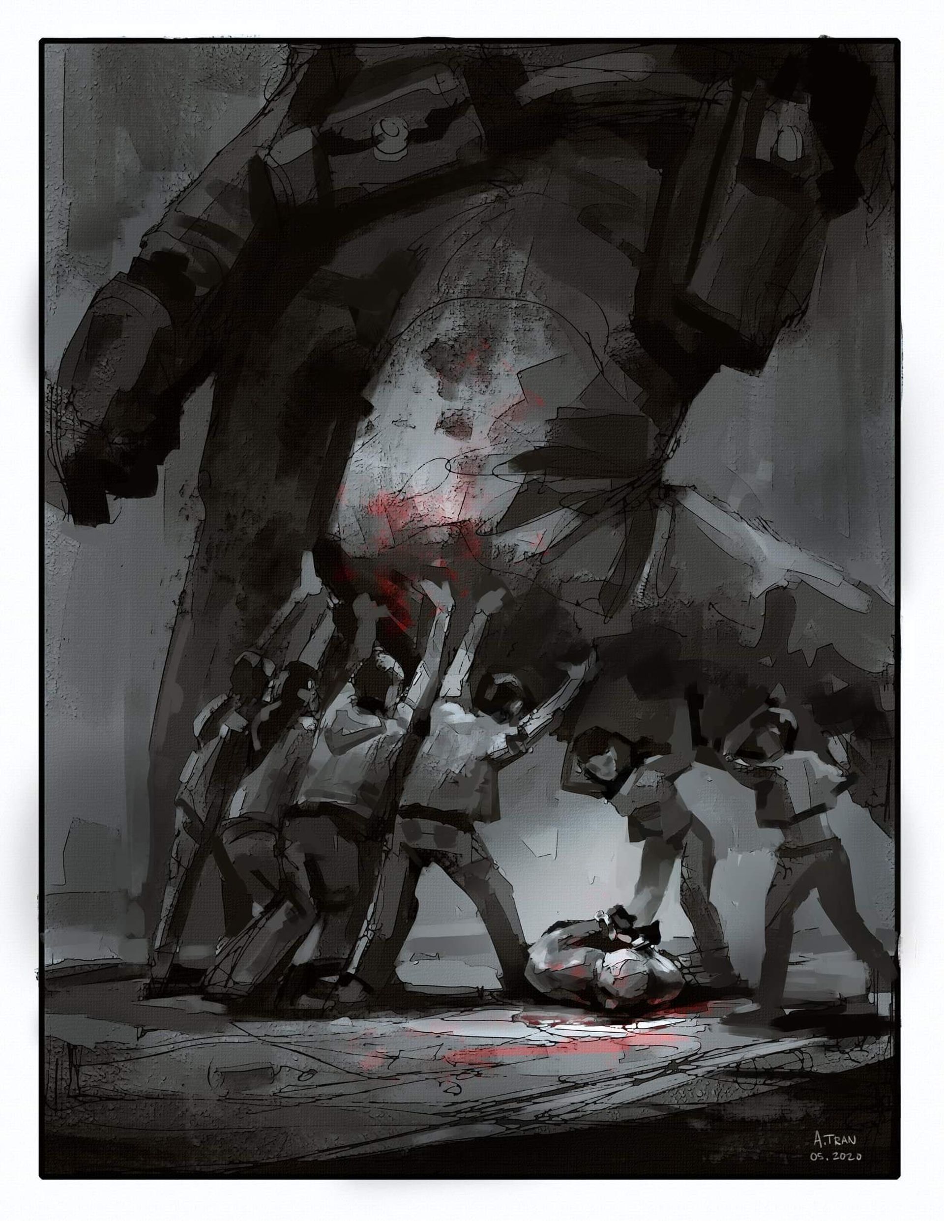 Other artists calling for donations to funds such as the American Civil Liberties Union of Minnesota, the Committee to Protect Journalists and the George Floyd Memorial Fund include Andrew Dat Tran, who has painted a group of people lifting a giant knee off a man lying face first on the ground, and Jayson Atienza, who has created a portrait in honour of Floyd and "the countless Black lives senselessly lost". Addie Wagenknecht is offering to send one of her prints depicting the US protests to anyone who donates more than $200 to Black Lives Matter or other organisations dedicated to people of colour, trans people, bail funds and #vote2020. And along with posting portraits of peaceful protesters, and victims of police violence including Floyd, and Breonna Taylor, a 26-year-old EMT who was shot by police in her home, Shirien Damra has urged her Instagram followers to donate to causes including Dream Defenders, Black Youth Project 100, Assata’s Daughters, and Law For Black Lives.