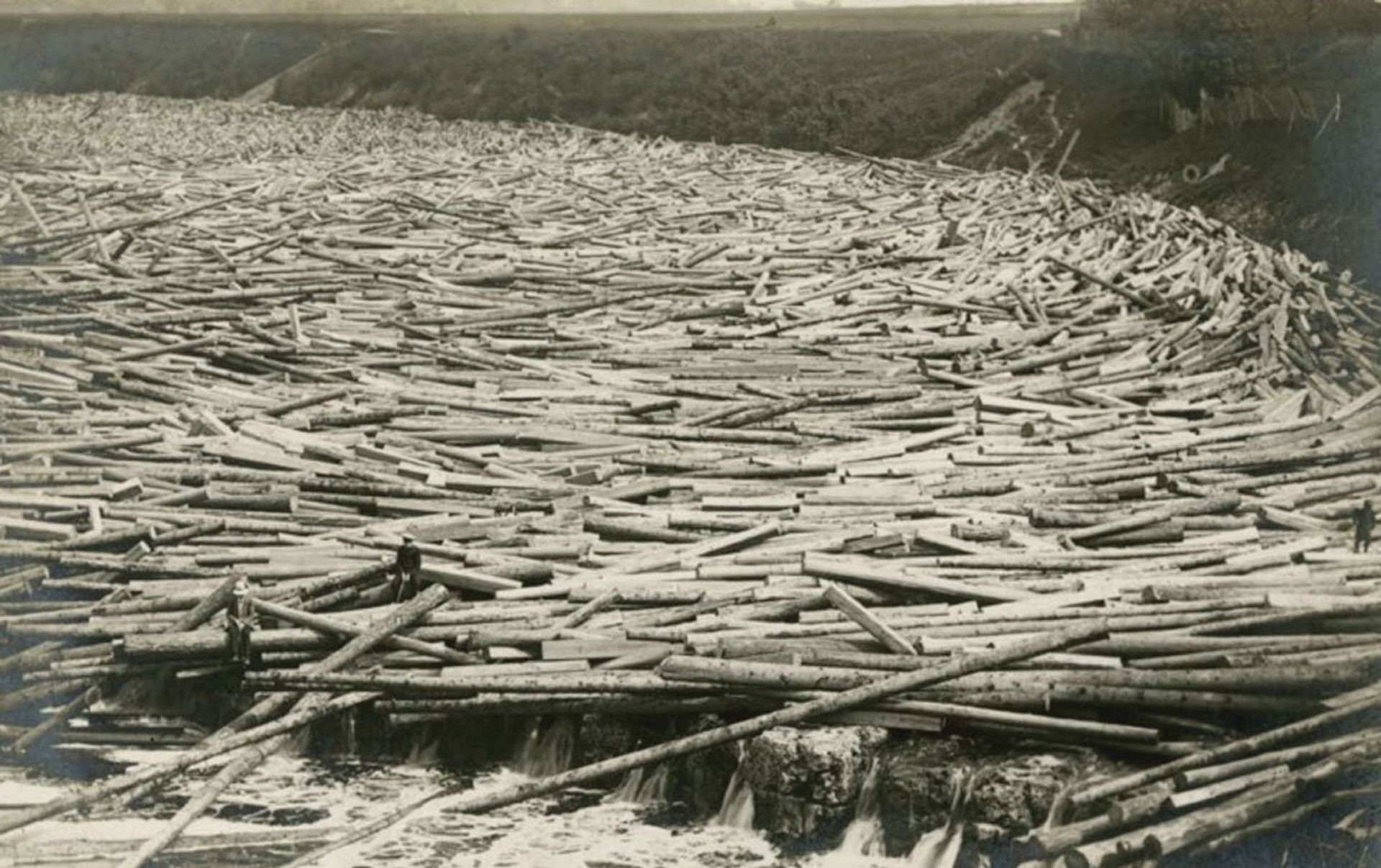 A postcard of the Venta river, probably taken in the early 20th century, which is part of Lina Lapelytė and Mantas Petraitis' research material Postcard collection of National Library of Latvia