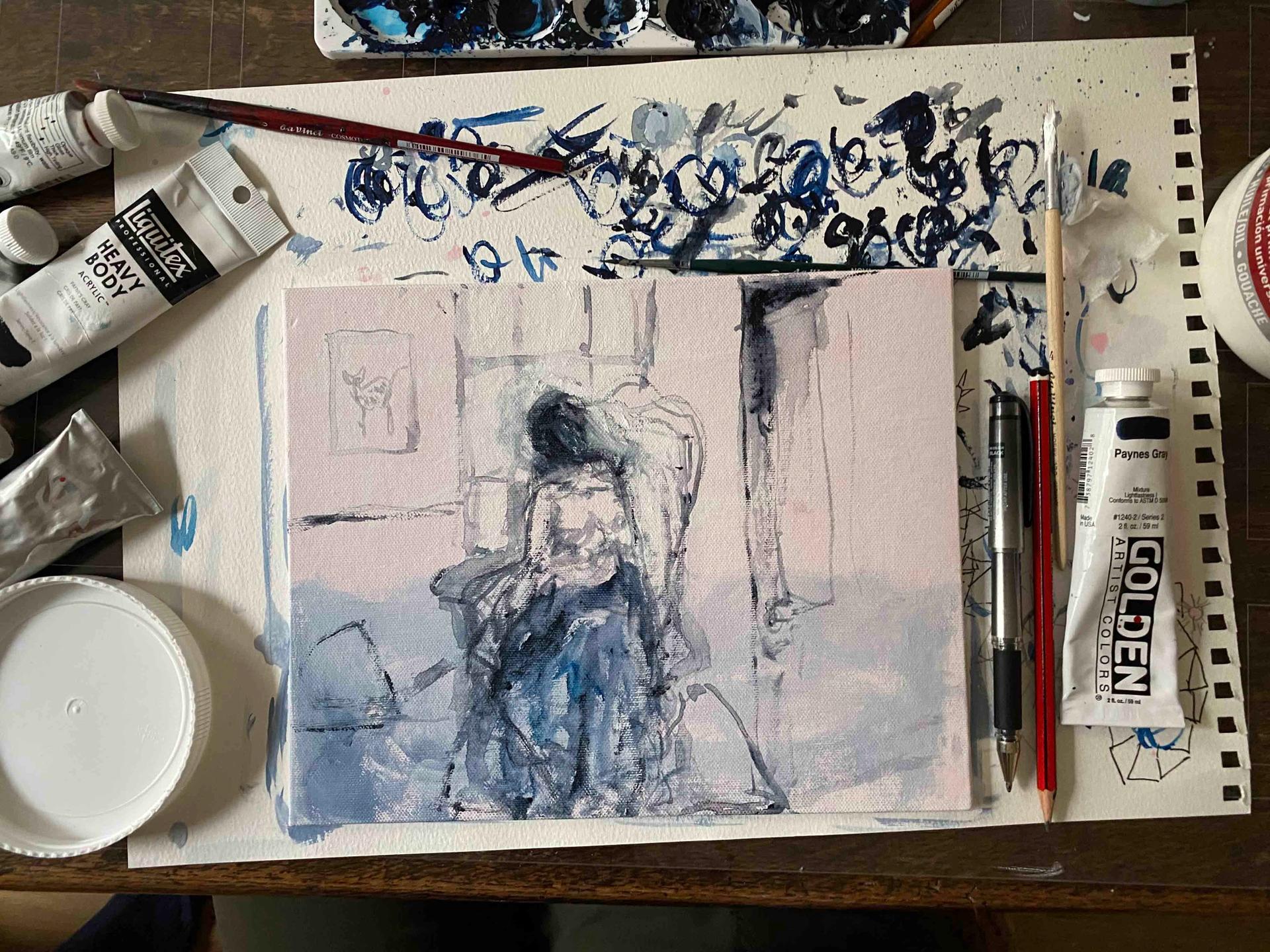 Her paintings, which she describes as “a little bit Impressionist-y, a little bit Matisse-y” are of interiors—some of her home on Fournier Street in East London, which she is selling after 20 years, and some of her new home in an undisclosed location nearby.