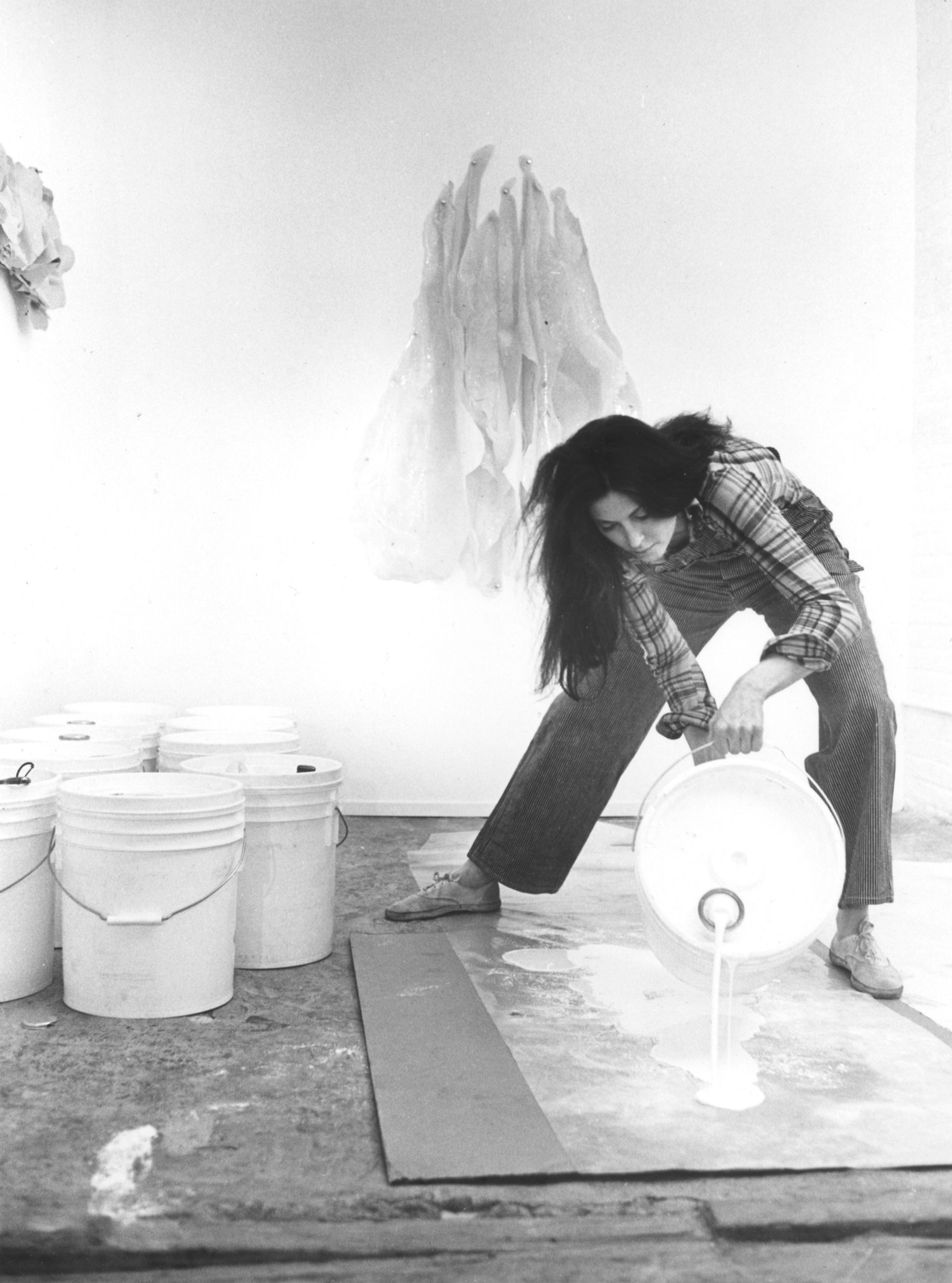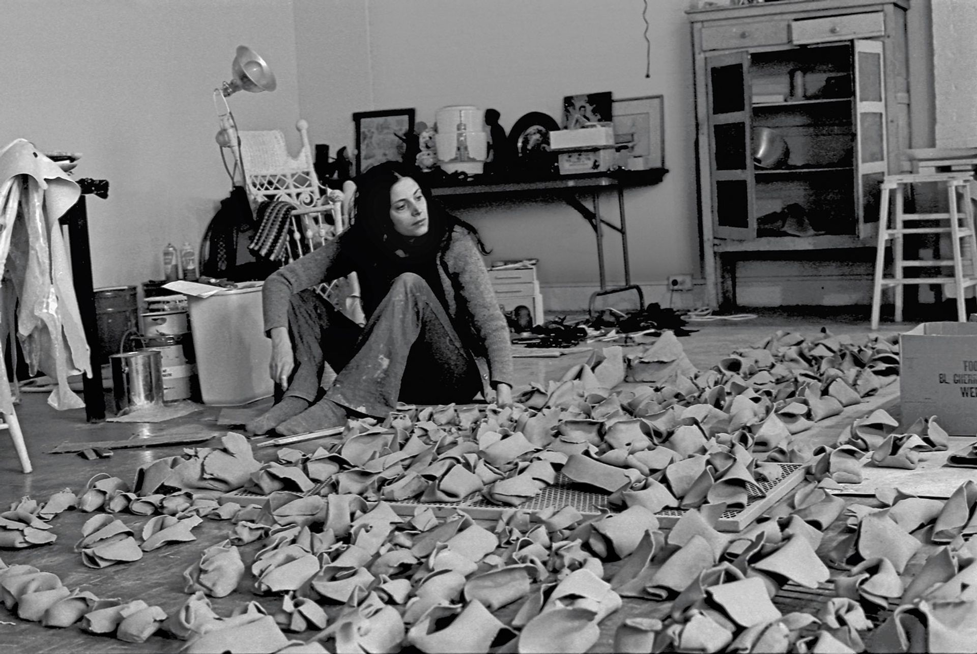 Hannah Wilke working in her Broome Street studio in 1974 © Marsie, Emanuelle, Damon and Andrew Scharlatt; Hannah Wilke Collection & Archive; VAGA at ARS
