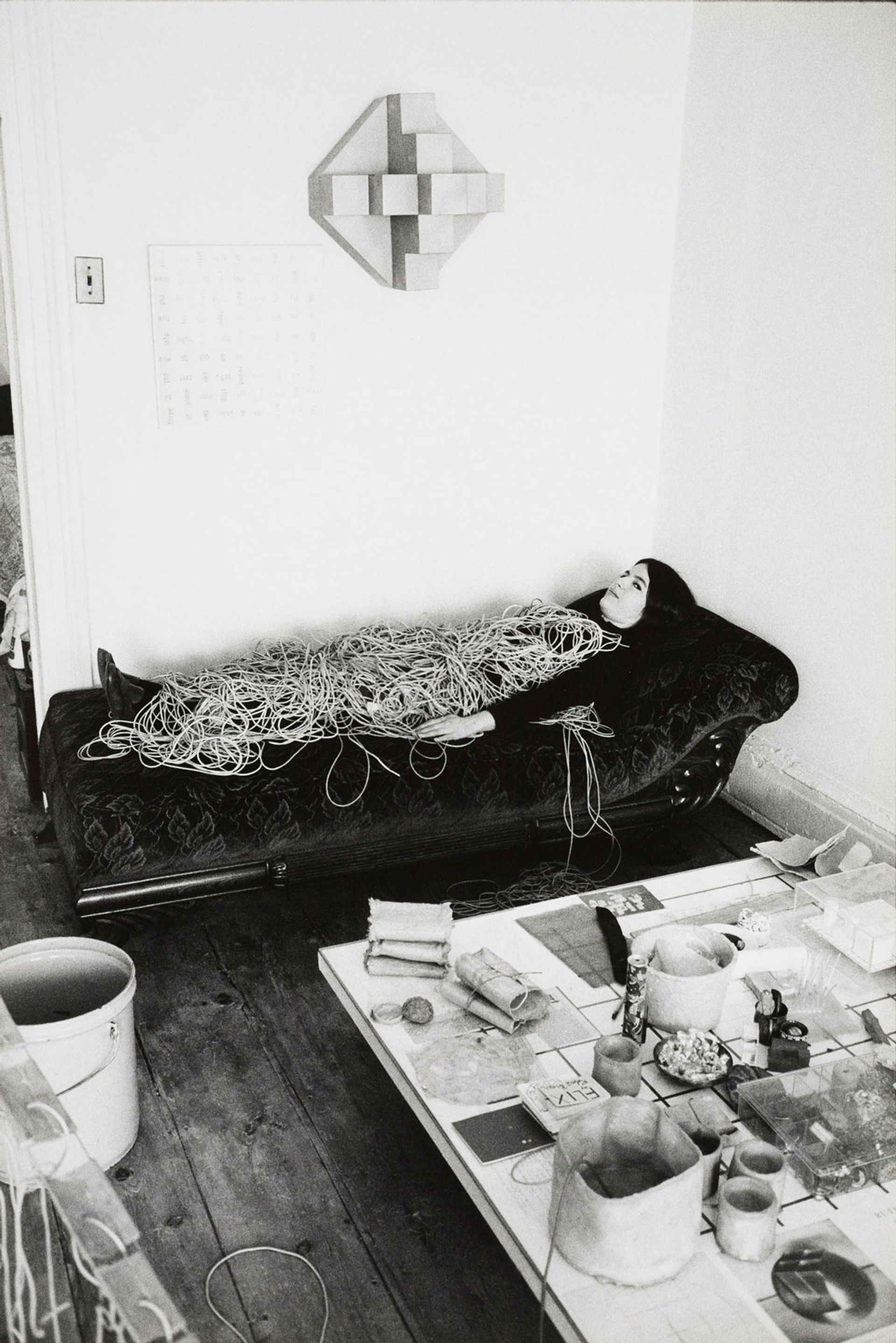 Eva Hesse with her sculpture Ingeminate in her New York Studio in 1969 Photo: Hermann Landshoff; bpk Bildagentur, Münchner Stadtmuseum, Art Resource