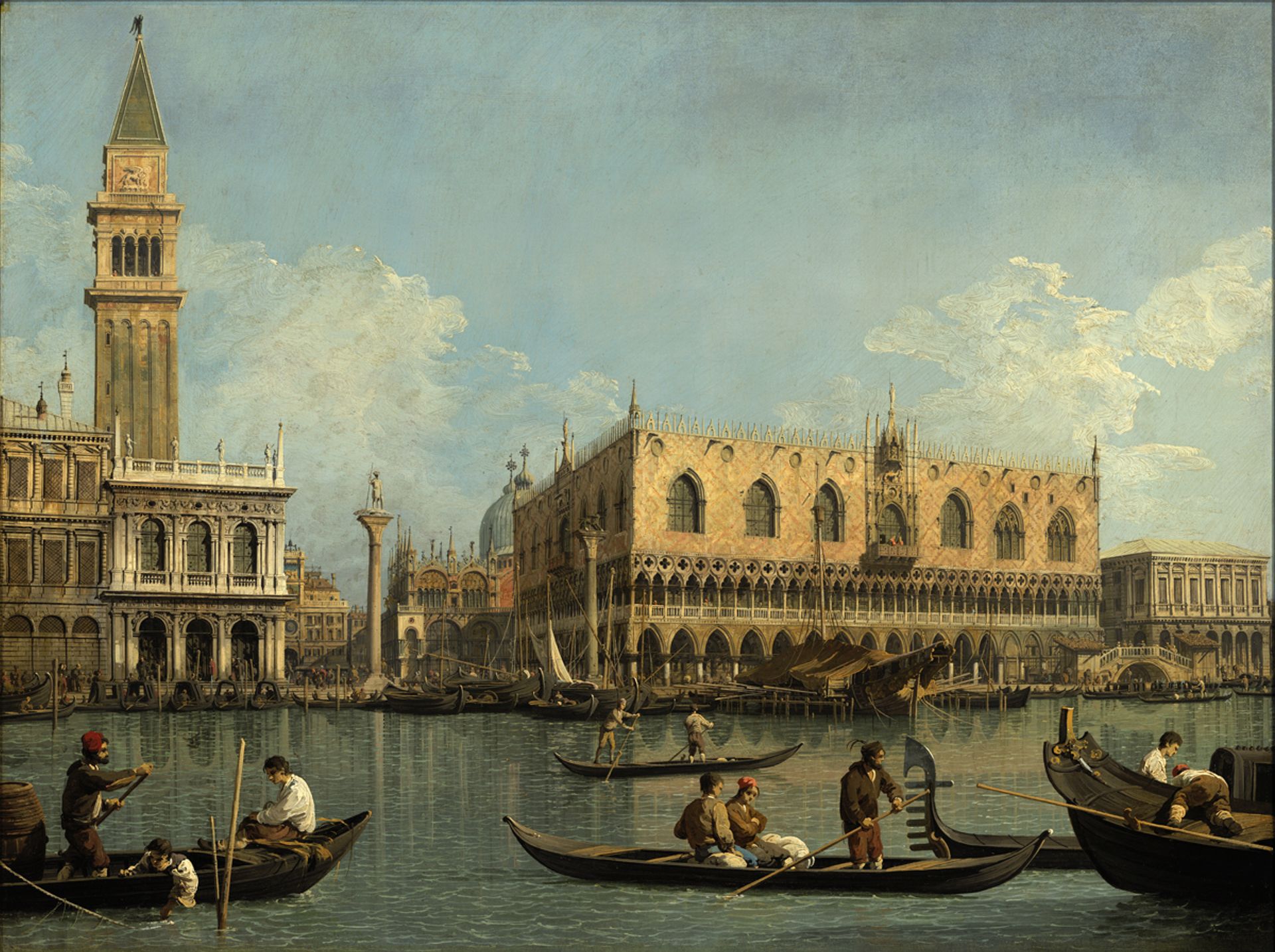 Canalleto’s View of the Basin of San Marco from the Punta della Dogana, from the collection of the Pinacoteca di Brera in Milan