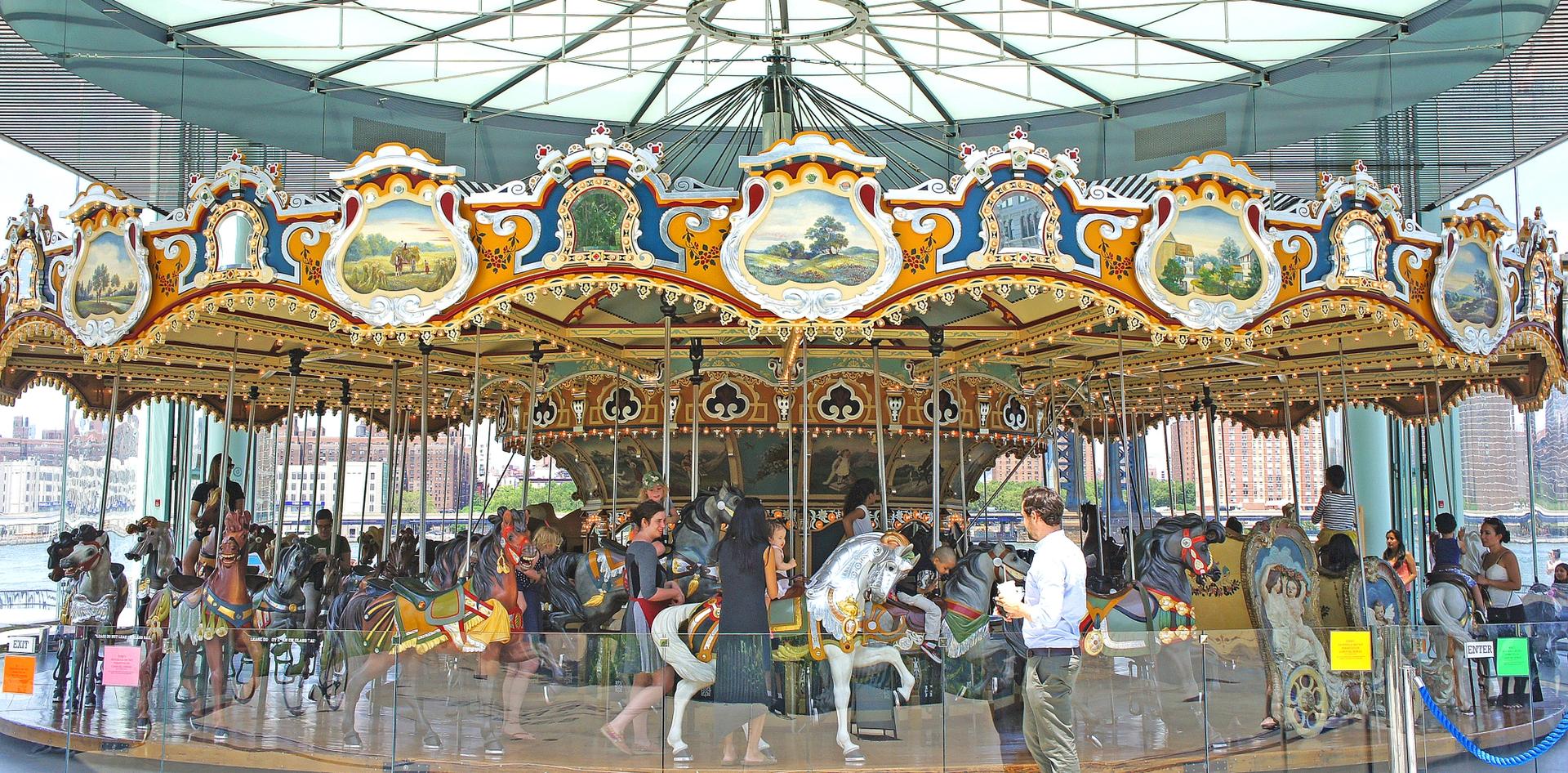 Jane Walentas graduated with a BFA in advertising design from Moore College of Art & Design in Philadelphia in 1966, and then worked at cosmetics firm Estée Lauder, where she became creative director. She received a master’s degree in printmaking from New York University in 1984. “I decided to restore the carousel only after I interviewed people to take on the restoration job and totally disagreed with the process most were using,” Jane said in a 2014 interview. “I actually worked on it for more than 25 years in a big drafty studio on Washington Street in Dumbo. For the first 10 years, I worked with just the help of a carpenter. When we moved to Dumbo, I enlisted the help of a local artist who helped me continue to scrape the paint down to the original layer. In 2007, I was ready to hire more staff, begin to paint and finalise the restoration.”