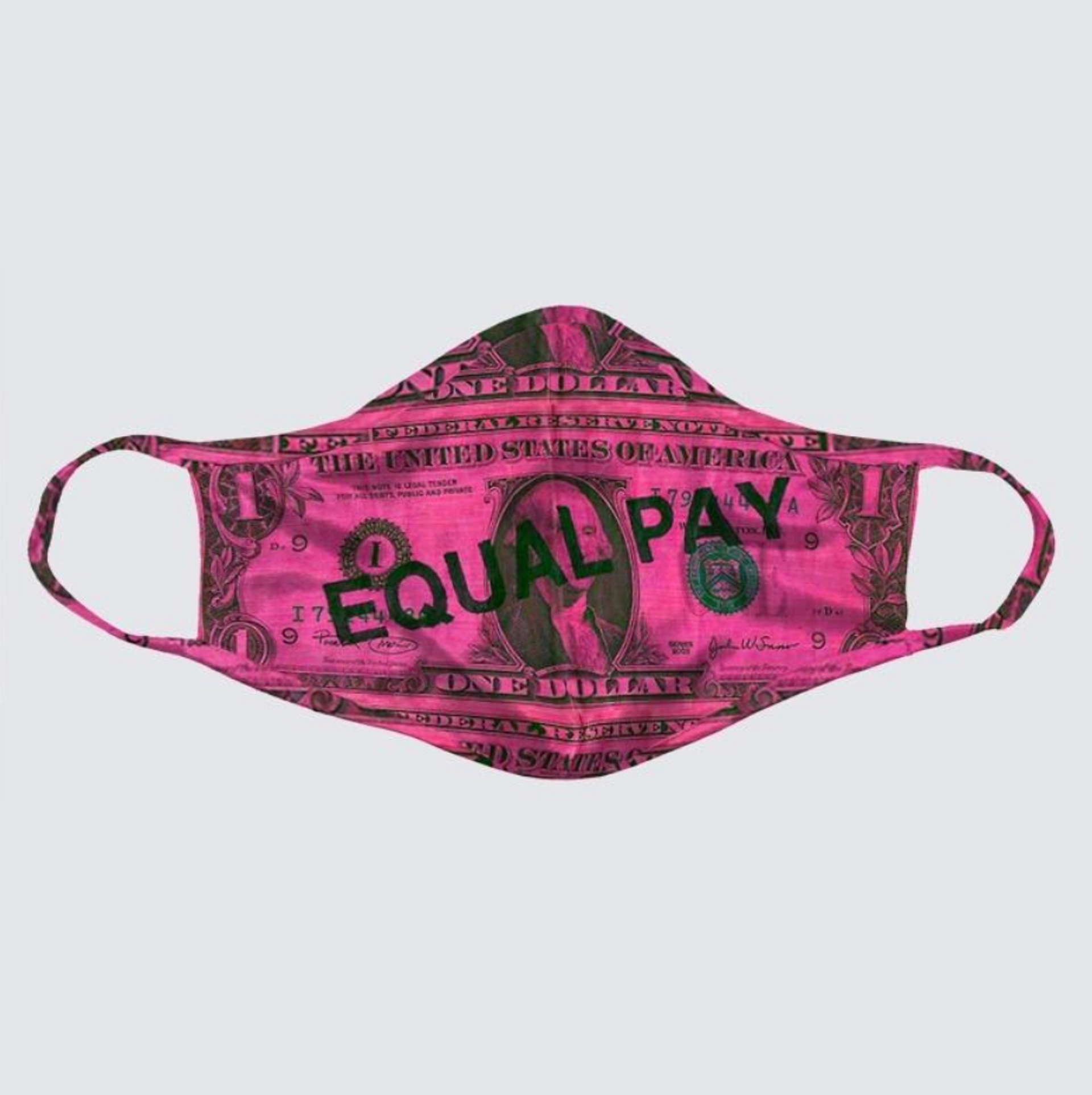 Michele Pred's equal pay mask. Photo courtesy of the artist Michele Pred's equal pay mask. Photo courtesy of the artist