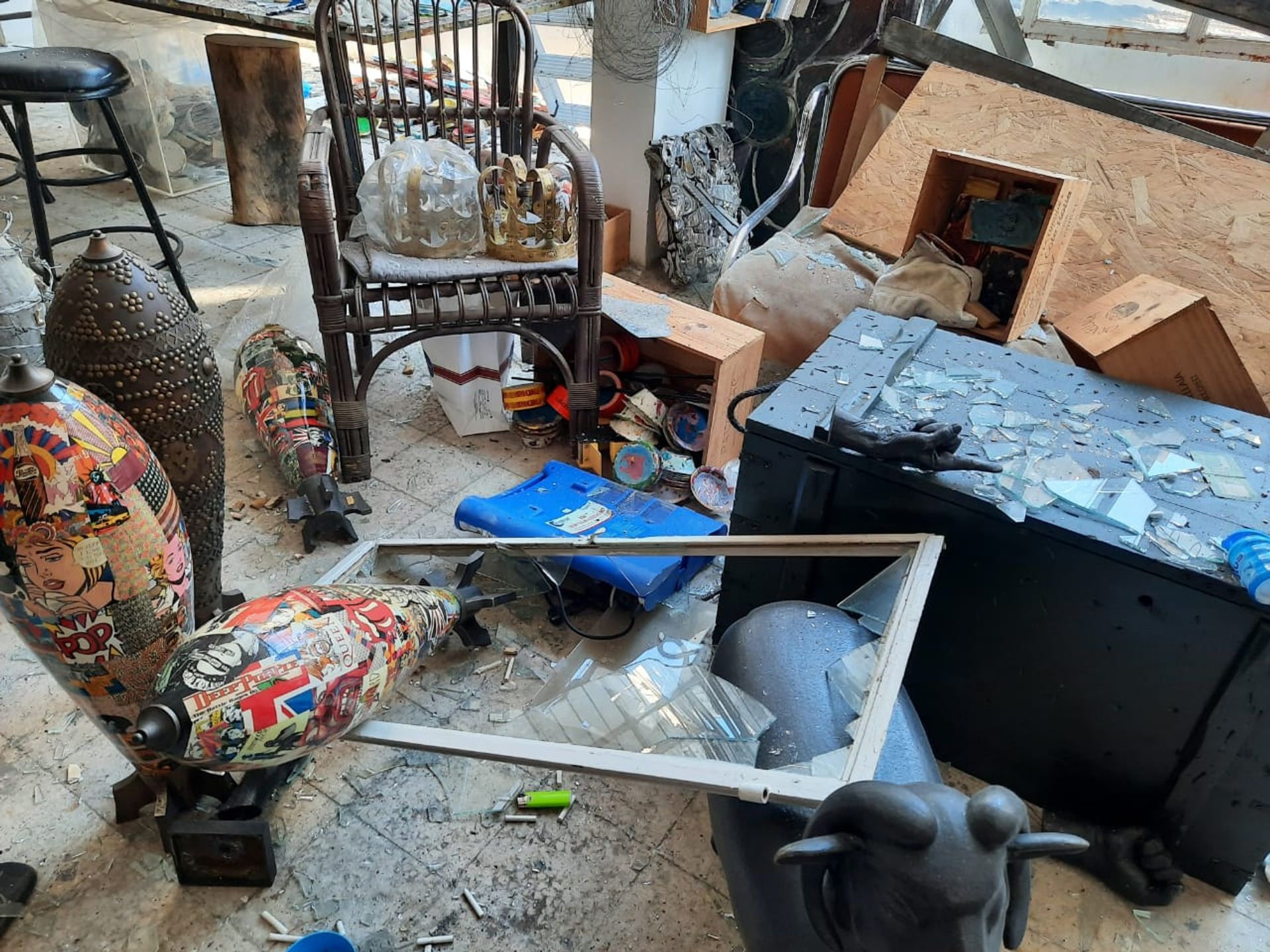 The destruction in Marwan Sahmarani's studio Courtesy of the artist