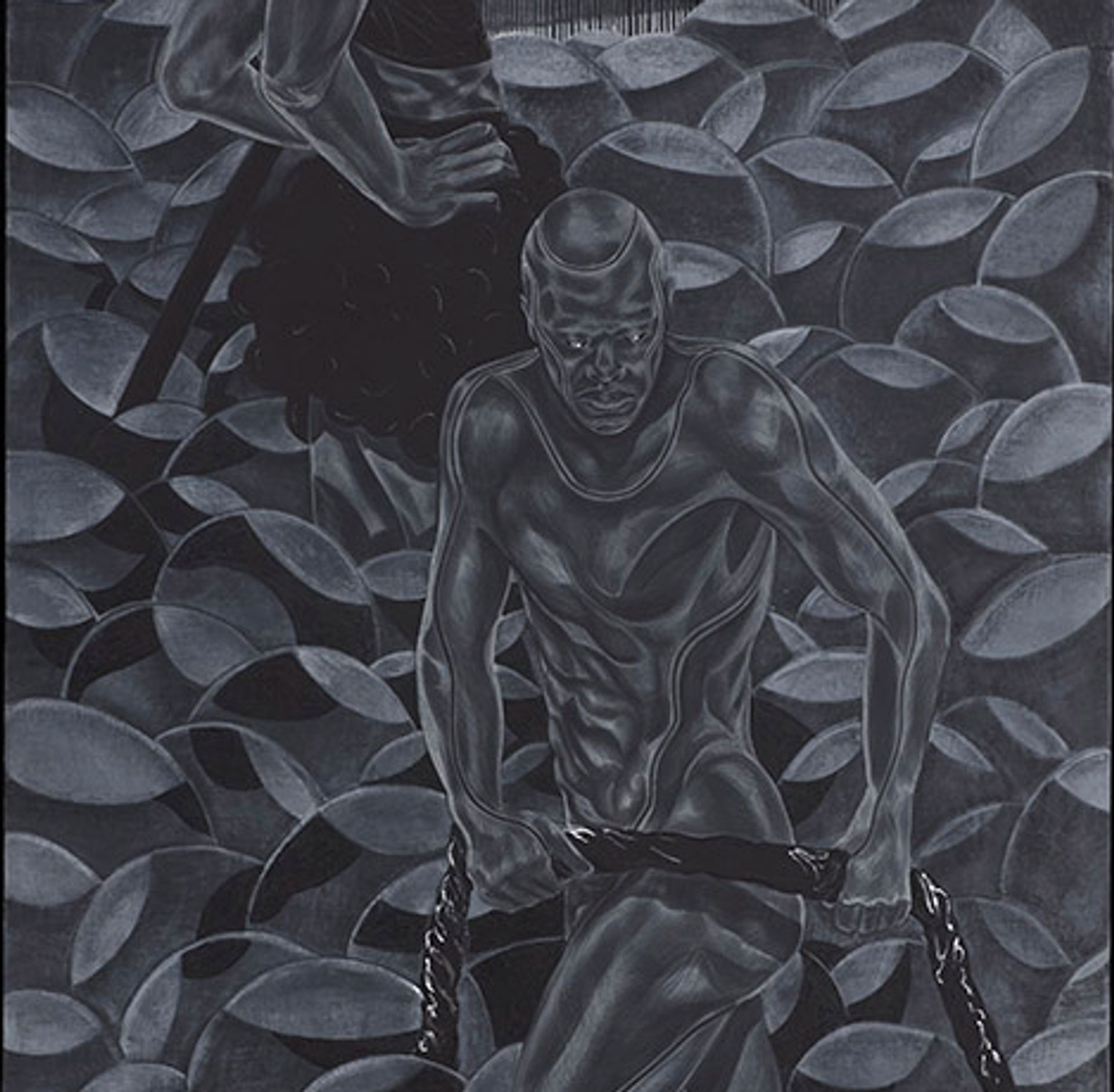 The show's title A Countervailing Theory derives from a term used in politics and economics to describe the idea of countering the effect of an existing power with an equal force. As they unfold along the wall of the Curve, these striking, often very large-scale, works offer glimpses into the customs of a world in which conventional expectations of gender, race and sexuality are inverted and societal and cultural norms challenged.