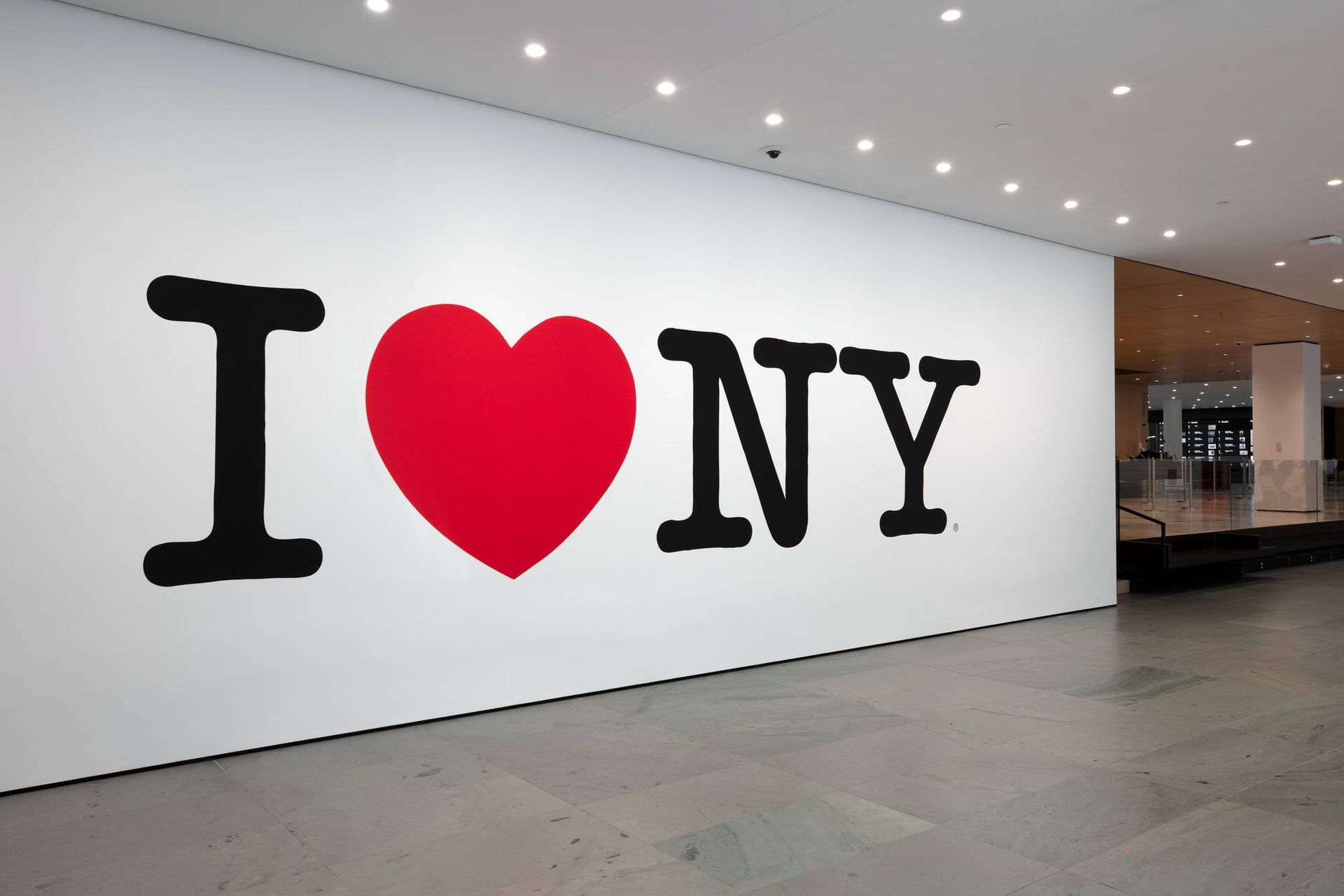 Milton Glaser, I ♥ NY logo, 1976, in the lobby at the Museum of Modern Art New York State Department of Economic Development, used under license by the Museum of Modern Art
