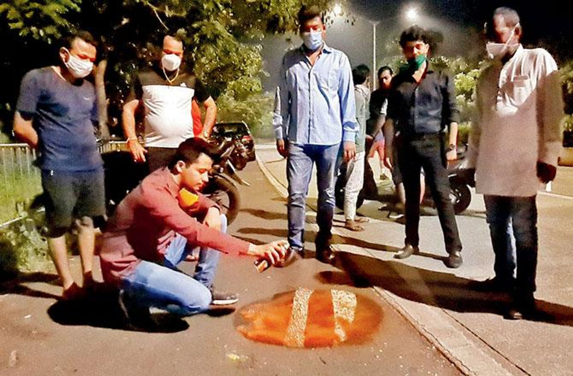 On 6 September, members of the Bharatiya Janata Yuva Morcha (BJYM), the BJP's youth faction, had covered the works in black paint. In retaliation, Tyler painted an image of the Indian prime minister Narendra Modi over one of the defaced works. Subsequently, BJYM members, led by the group's national convener Devang Dave, covered it up once more, this time recording their actions in a video posted to Twitter.