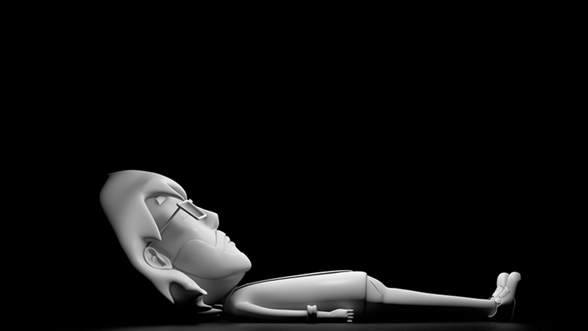 There’s more disorientating discombobulation as every ten minutes the entire space is plunged into darkness and a large 3-D film transports you into a far-reaching cosmos inhabited by cartoon constellations and floating eyeballs. This galactic interlude plays out around a giant sculpture of Holden’s cartoon alter-ego lying prone on a giant plinth that could also be a sarcophagus. Is he dead or just having paranoid spacey dreams? Either way, his cut-out silhouette punched through an adjoining wall tells us that the cartoon Holden has now left the building.