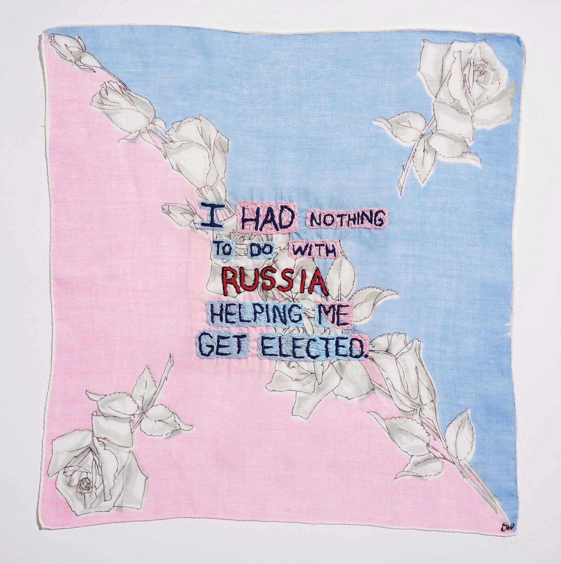 It was two years into Donald Trump’s presidency when Diana Weymar decided to finally engage with his notoriously inflammatory posts on Twitter. But instead of using Trump’s social media platform of choice, Weymar, a textile artist, chose alternative media: needle, thread and vintage fabric. Her ironic interpretations of the US leader’s most memorable statements will now go on view in a series of exhibitions ahead of the presidential election in November.