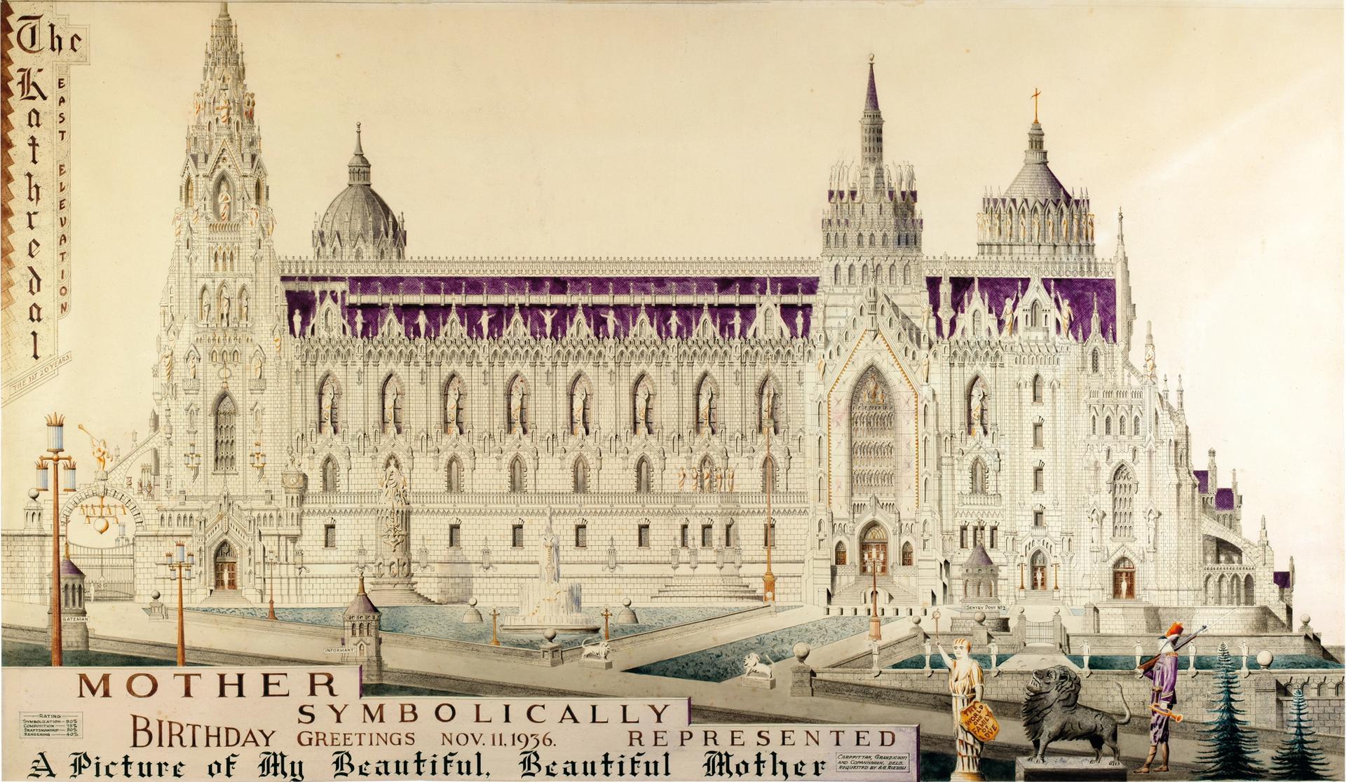 Achilles G. Rizzoli's Mother Symbolically Represented/The Kathedral, ink on rag paper, 1936 © Visko Hatfield, from The Hidden Art (Rizzoli Electa, 2017)