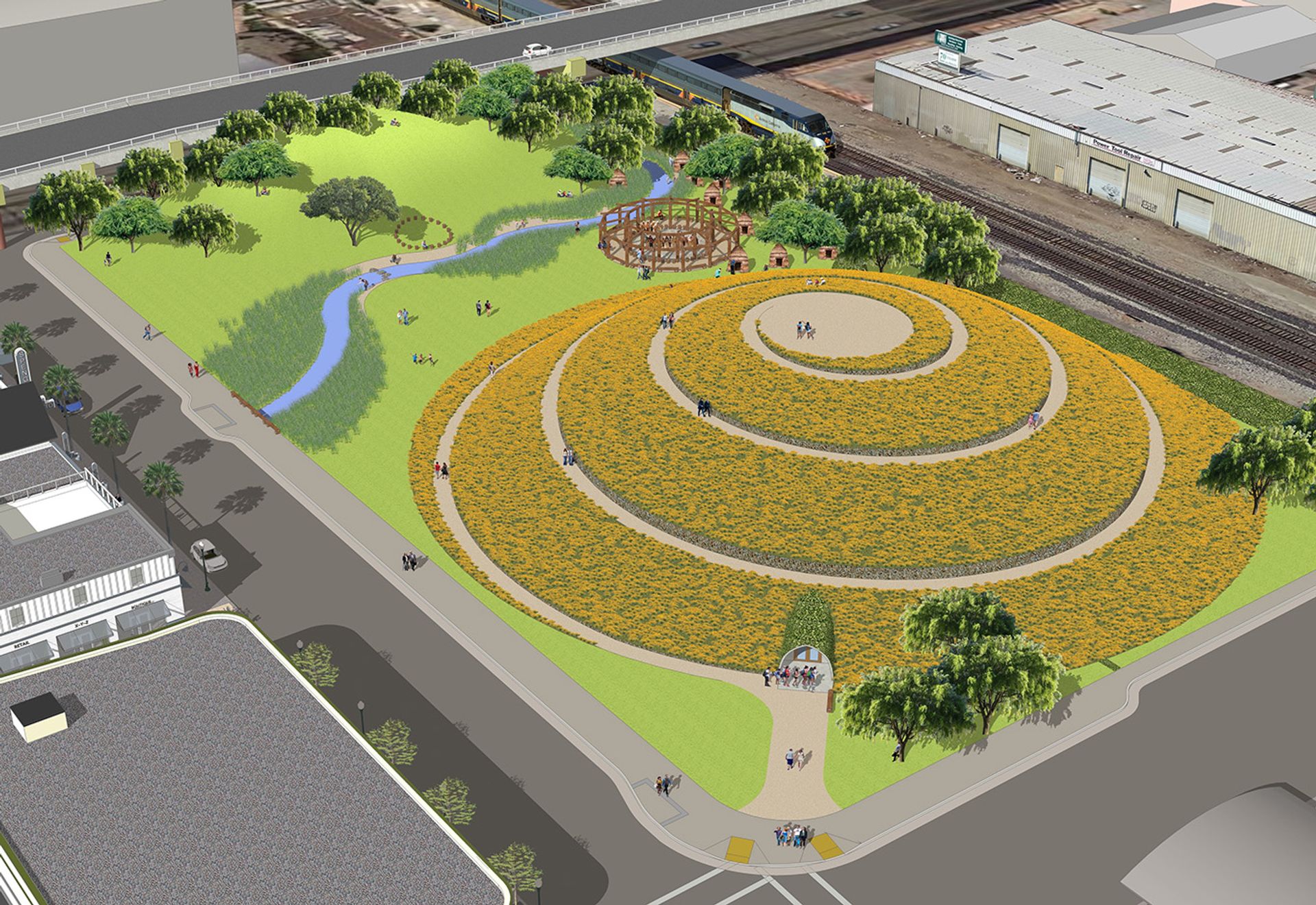 A rendering of the West Berkeley Shellmound in Riverside, California. The site is still an active site of Ohlone prayer and ceremony. Chris Walker
